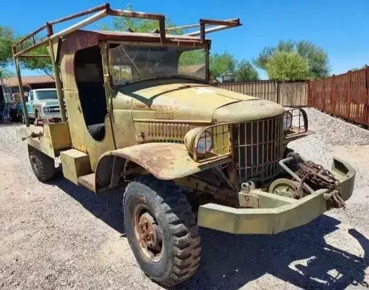 1941 WC-25 Powerwagon Radio Recon truck. Modified from open cab command car style to now have a roof and truck bed that has been on many years and now looks natural. It does have a series of tags on the dash with a seriel number an model WC-25, plus it has the passenger battery box on the stepboard and pair of center guages on the dash. The winch has been added on later possibly from a WC-24 or similar. Assume engine needs rebuilt as some parts are off, transmission, transfer case are also removed in bed of the truck. See photos I spread all of the included parts out in the bed. Doesnt include loose set of combat wheels shown in bed they are long gone. What you see is what you get, AZ title as 1941 Dodge WC25 located in Buckeye, AZ 85326 regional delivery available.Military vehicle army truck aircraft helicopter air plane humvee kaiser m-715 Jeep Willys Studebaker hmmvee deuce m-725 hemi Cummins, crawler, militeria museum gpw m101 m105 m211Located in Buckeye AZ 85326. Regional delivery available.Hemi 426 hot rod 454 street rod 460 custom 427 lowrider 409 boss 392 c10 rat rod 327 Desoto 350 race car 383 halibrand 5.0 mustang 440 cobra edelbrock holley Carter accel weiand blower supercharger turbo 4 speed 5 speed 6 speed hoist cragar Gas Pump petroliana Cessna Piper Beechcraft Bell