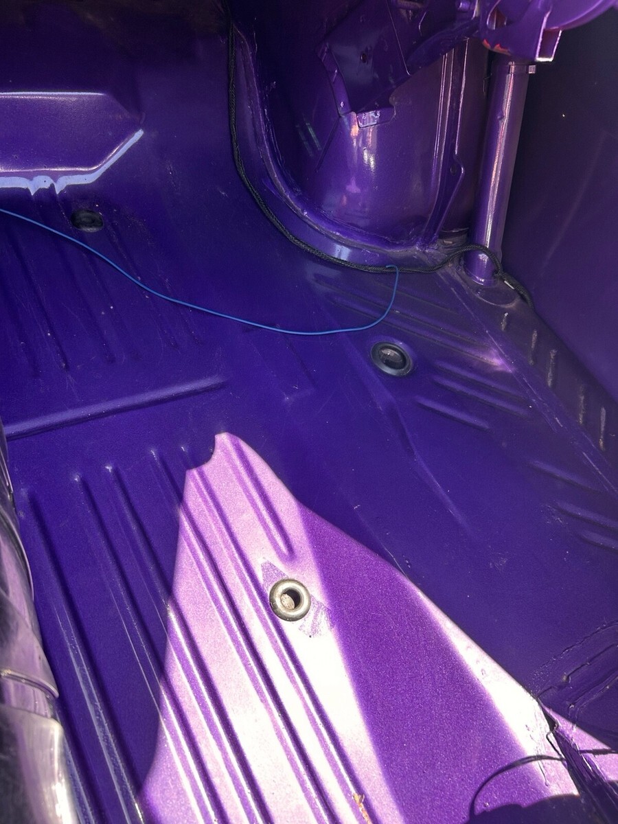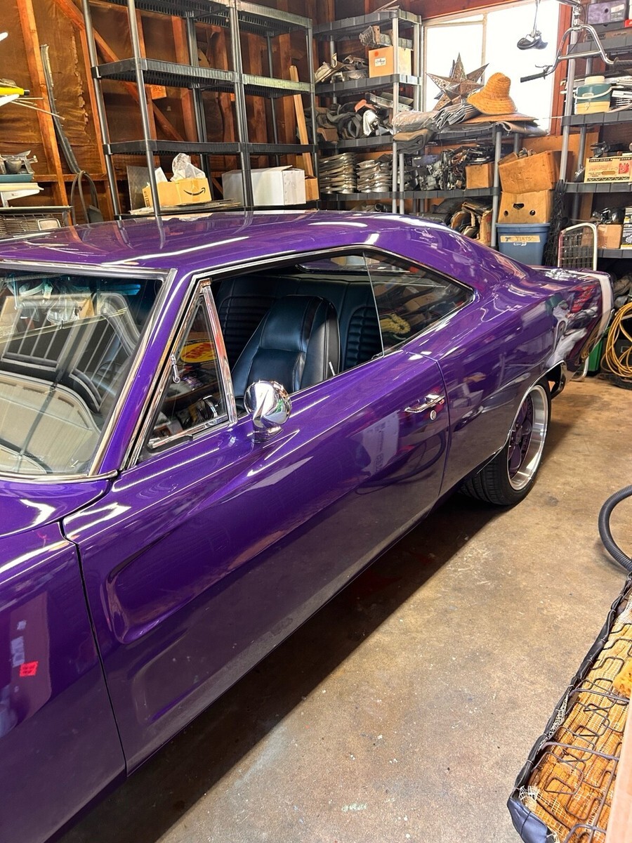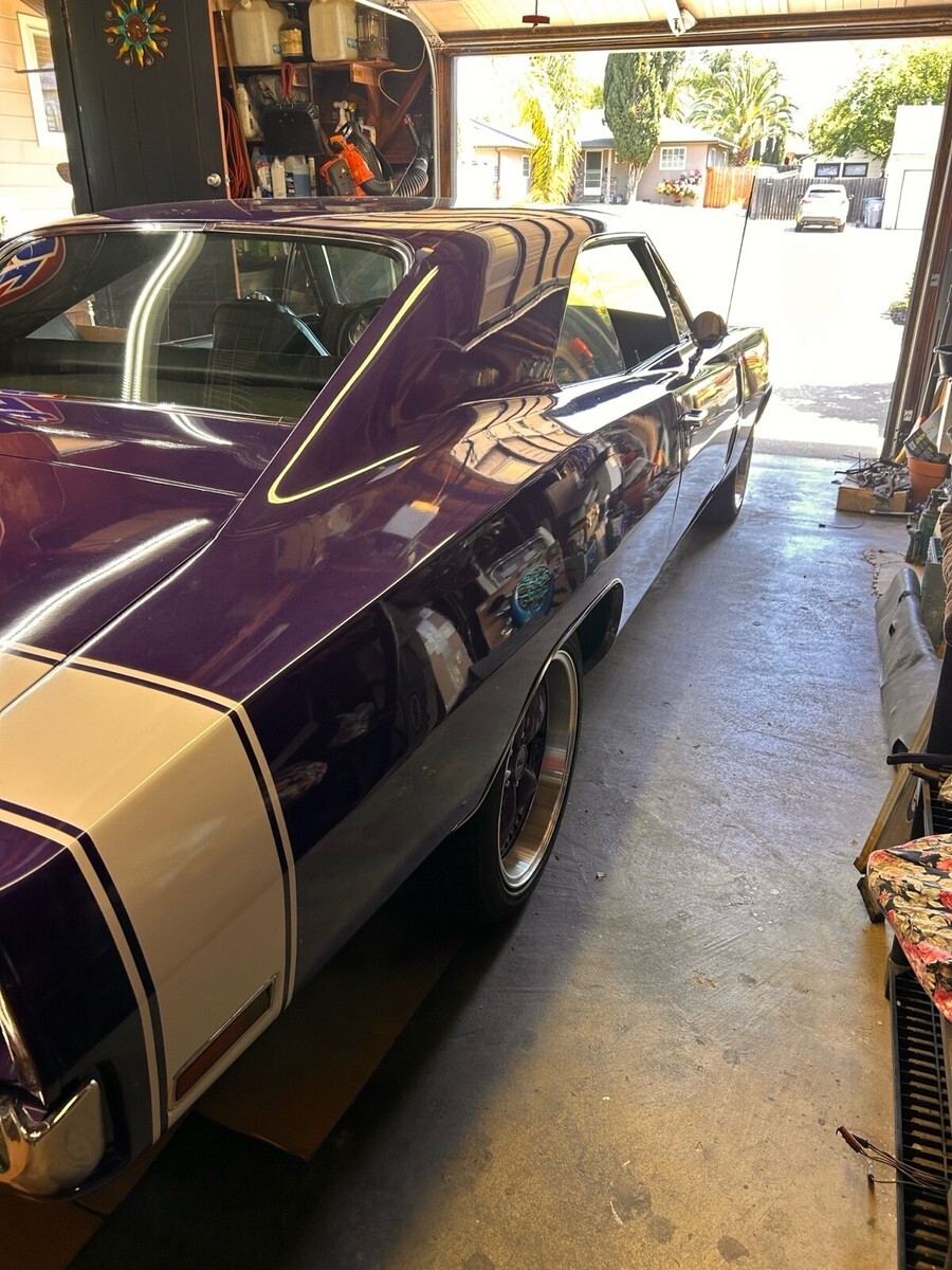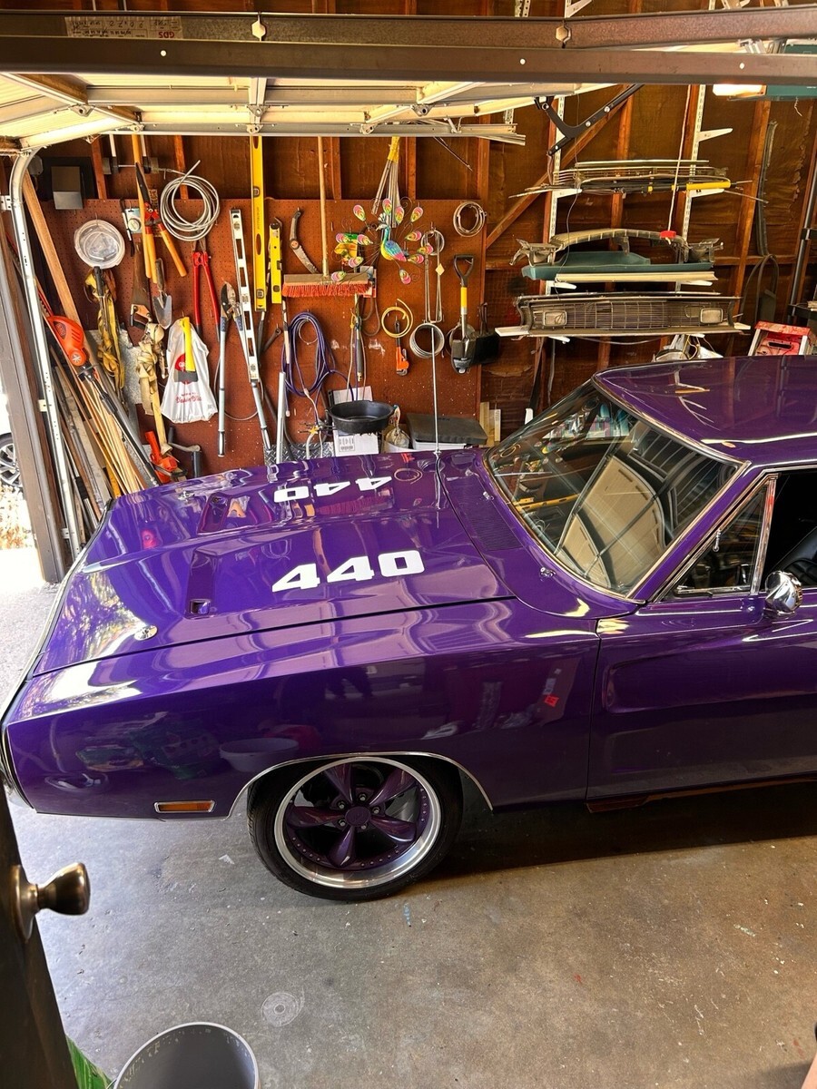 The car has an extremely straight body and is a California original car. Beautiful Plum Crazy purple paint job with white R/T stripes. Looks fantastic. All of the body accessories Are new as the car has been completely gone through.