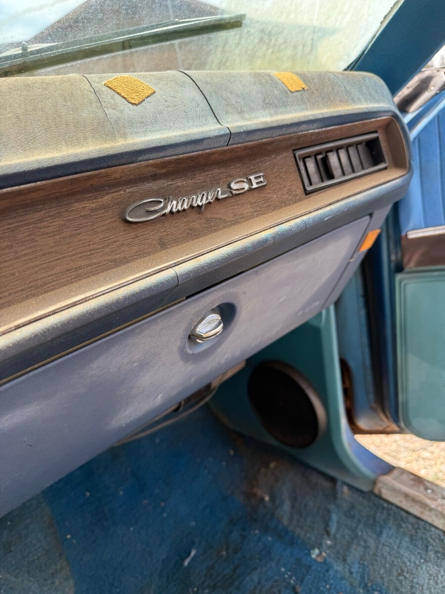 This is one heck of a barn find.The car has been sitting since 1985 so we put new thermostat and belts etc to get it running good.This is an unmolested original charger. The vehicle has 55,000 original miles with a, ps,pb and power windows and factory rare sunroof with Rally Gauges and tach.its factory B5blue with blue interior with slapstick auto and rear defroster.It has original engine and a factory 323 posi rear.There is one small rust spot which is shown otherwise no rust anywhere.the vehicle runs and and drives great just needs restored.This is a loaded 2 fender tag car and is full of options.i tried to decode most of them but some I am not sure about.please email with any questions._This is an Se the quarter windows do not roll down and with the sunroof this is one rare car