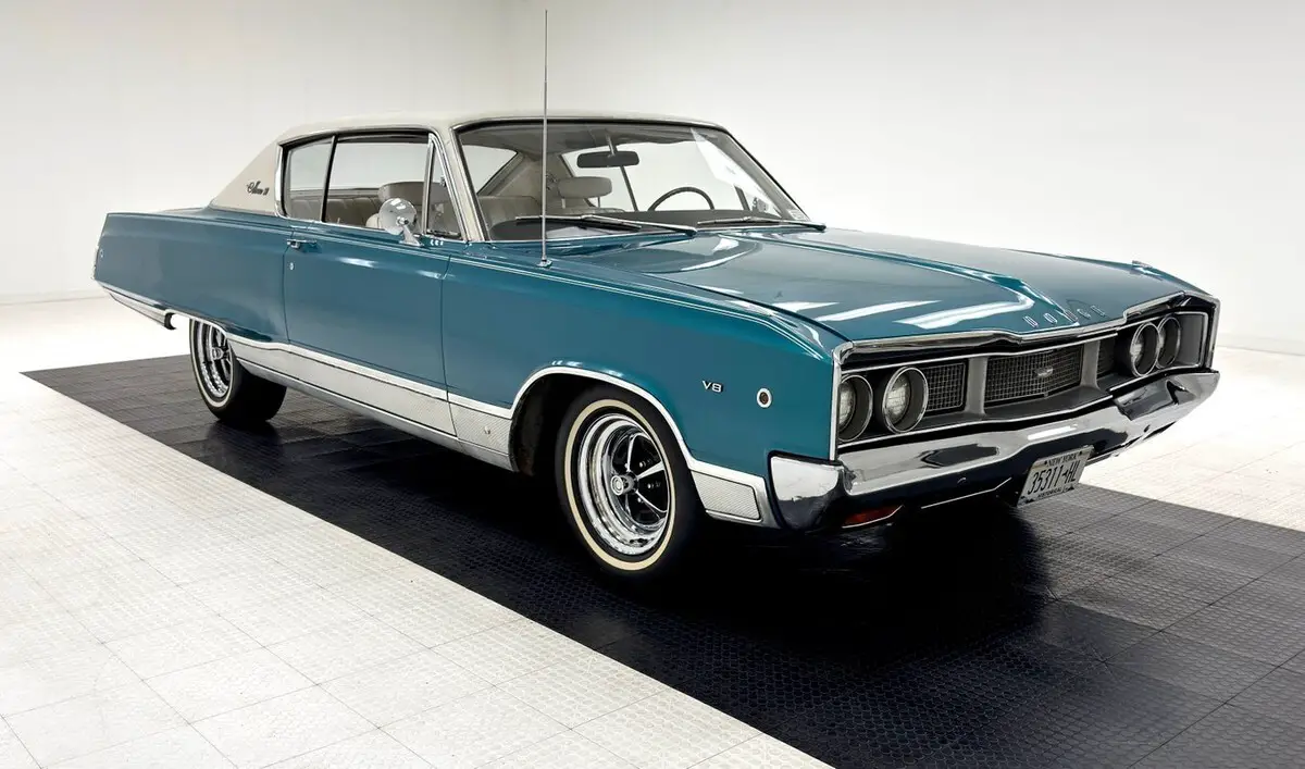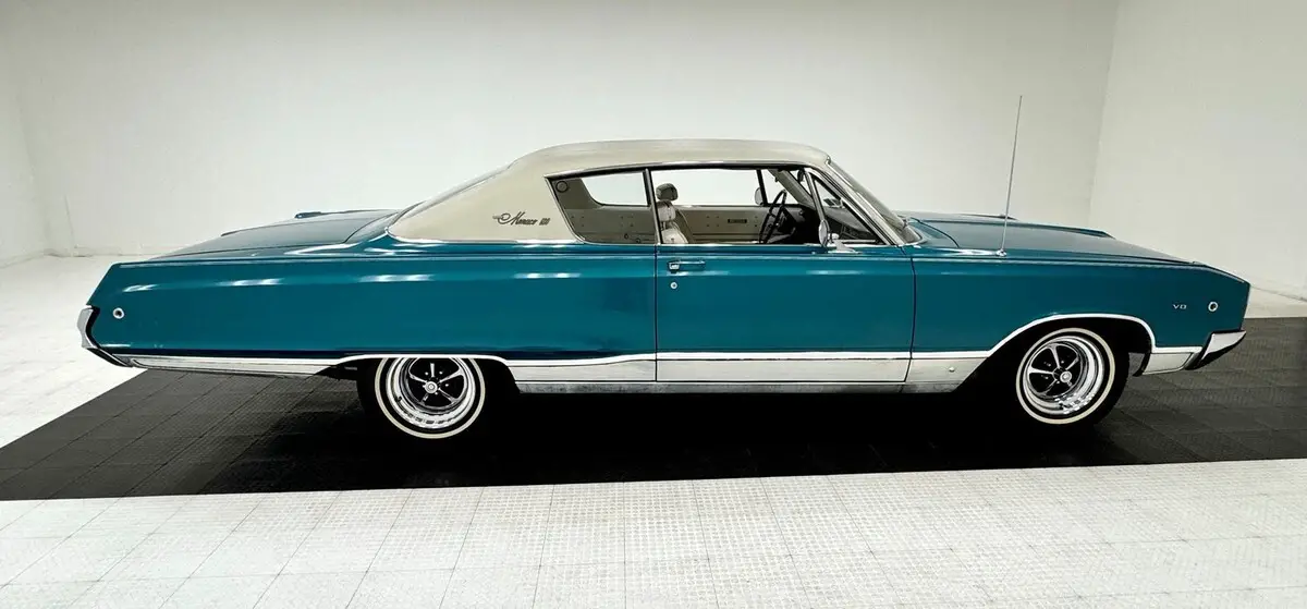 A wonderful example well cared for and always run on non ethanol fuel. The Monaco 500 badge on the vinyl top's C-pillar is the crowning jewel to this classically 60's oddity that also boasts its original turquoise color, strong body lines, and long, linear trim, a period trend. This car is poised to return to the show circuit to wow the audience and whether it's a pure Mopar show or your town's Church fundraising car show, this car has presence overload!