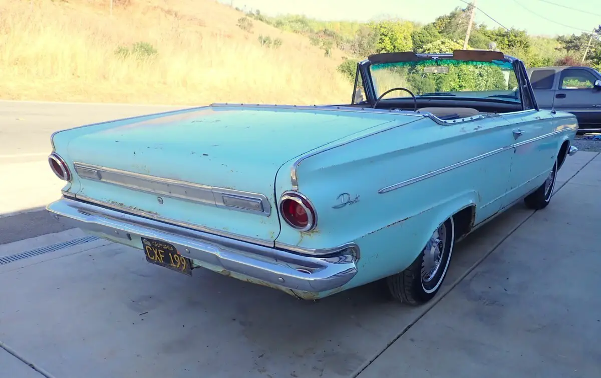 This is an original 1963 Dodge Dart GT Convertible. The car just came out of the estate of the long time owner. It has a clean title in my name and has been on non operational registration since 1998. This is an original California car and retains its original black and gold California license plates from 1963. The car runs, drives, shifts, steers, and stops. I have driven it on the highway and it drives well for a car that had been in storage for over 25 years. With some more tinkering, this car could be turned into a daily driver as it is. It would also be a great restoration or hot rod project. The possibilities for this 1963 Dodge Dart GT convertible are only limited by your imagination.Engine:The engine is a Dodge 225 slant 6 cylinder which is the largest engine that was available in the 1963 Dodge Dart. It starts quickly and runs smooth with no knocking or smoking. The engine seems to run cool and has lots of power. The engine was recently treated to a new water pump, upper and lower radiator hoses, heater hoses, thermostat, and of course and oil and filter change.Transmission:The transmission is the mythical push button 3 speed automatic. I believe the model number for the transmission is 904. It is controlled by the push buttons and the left side of the dash. The fluid is bright red .The transmission shifts into all gears smoothly with no slipping or strange noises.Body:The body on this Dart is in good condition overall. There are no major dents. I don't see any evidence of prior accident damage. There is surface rust but no major rot on the exterior body panels that I can detect. The trim appears to be all intact less some emblems and one piece of the convertible top well trim. The glass is all clean and clear with no chips or cracks and some light scratching. The bumpers look straight overall with aged chrome as shown. With some cleaning, this Dart would look great with some patina as is. It would also be a great foundation to take to the next level.Interior,The interior appears to be complete less the cigarette lighter and is in need of restoration as shown.Trunk:The trunk is in good condition with no major rust or damage. The original spare and jack as intact.Undercarriage:The undercarriage of this car looks nice overall. The suspension looks all original and intact. The gas tank, rear end, transmission, and steering all look original and undistrubed. The floors under the passenger compartments have corrosion and should be replaced. I imagine the carpet got wet at some point and corroded the floors. The rockers and frame components look to be in good condition.Wheels/Tires/Brakes:The wheels are the original Mopar 13 inch steel units with original full wheel covers. The tires are new whitewalls that were just installed in the last few weeks. The brakes were inspected and had all soft lines replaced. A new master cylinder was also installed before new fluid was bled through the system.Convertible top:The convertible top frame is intact and goes up and down with some resistance. The top was originally power. The rams were disconnected when found and I have no investigated further. The power top pump does pump when the switch is moved to up or down. The convertible top itself is torn up and needs to be replaced.Overall:This 1963 Dodge Dart GT Convertible has spent its entire life in California. After being stored since 1998, it was recently pulled out of mothballs and now runs, drives, stops, and steers. This would be a great starting point for a weekend cruiser, daily driver, restoration, or hod rod project. Don't miss this real deal original California 1963 Dart Dart GT convertible!I made a couple videos to show you the car. One is a walk around and one is a quick test drive. To watch the videos on a PC or laptop, simply click the play icons in the pictures below. To watch on a smart phone or tablet, copy and paste the links below the pictures into your browser.Feel free to contact me with any questions through Ebay. This car has a clean California title in my name and is located in Santa Cruz, CA 95060.