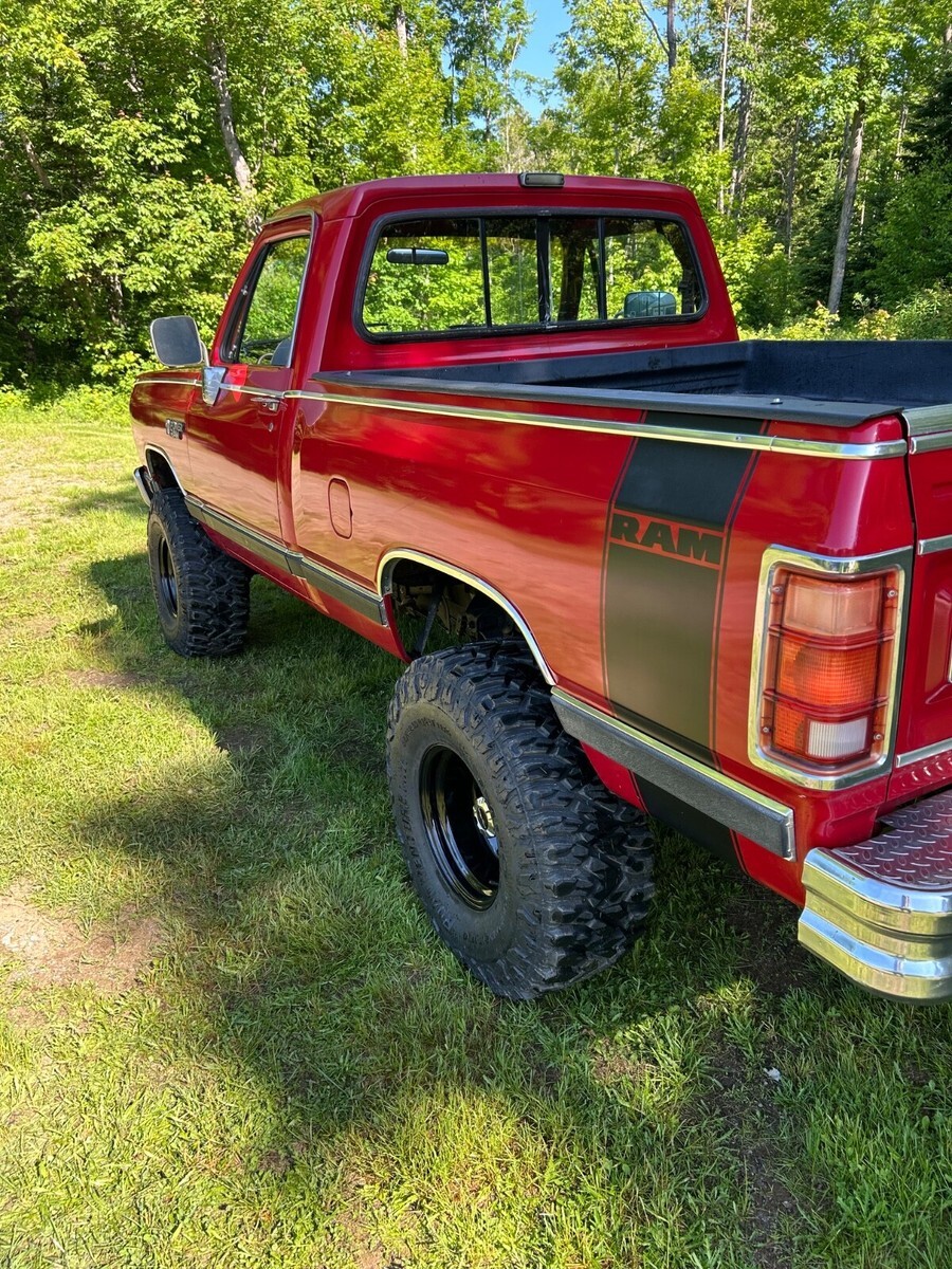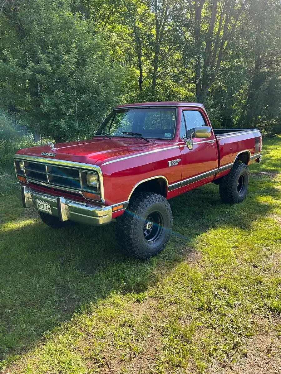 The 1989 Dodge Power Wagon is a classic standard cab pickup truck with a distinctive red interior and exterior color. This model, known for its durability and off-road capabilities, has a comfortable seating for 3 people. With only 110,000 miles on the odometer, this clean vehicle title Dodge Power Wagon is a reliable choice for those looking for a rugged and versatile pickup truck.