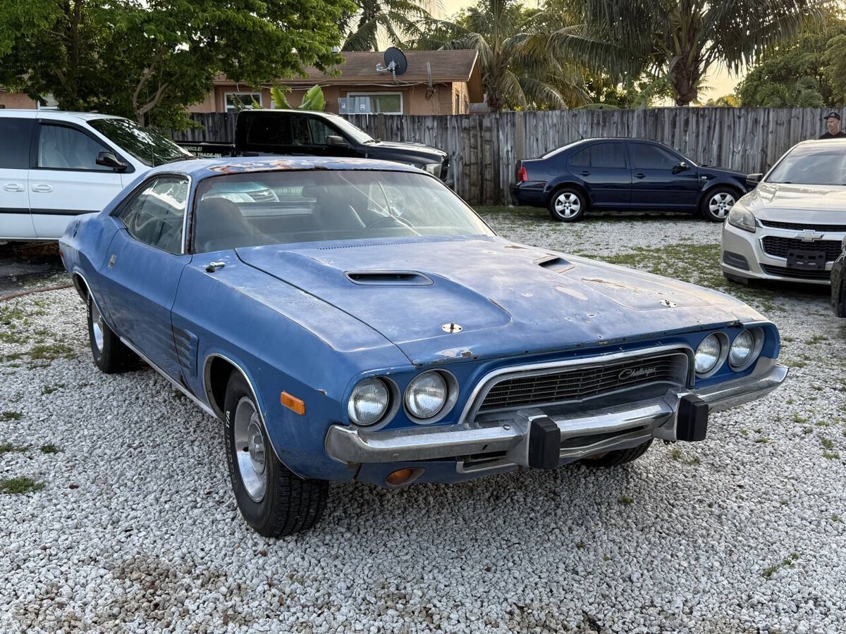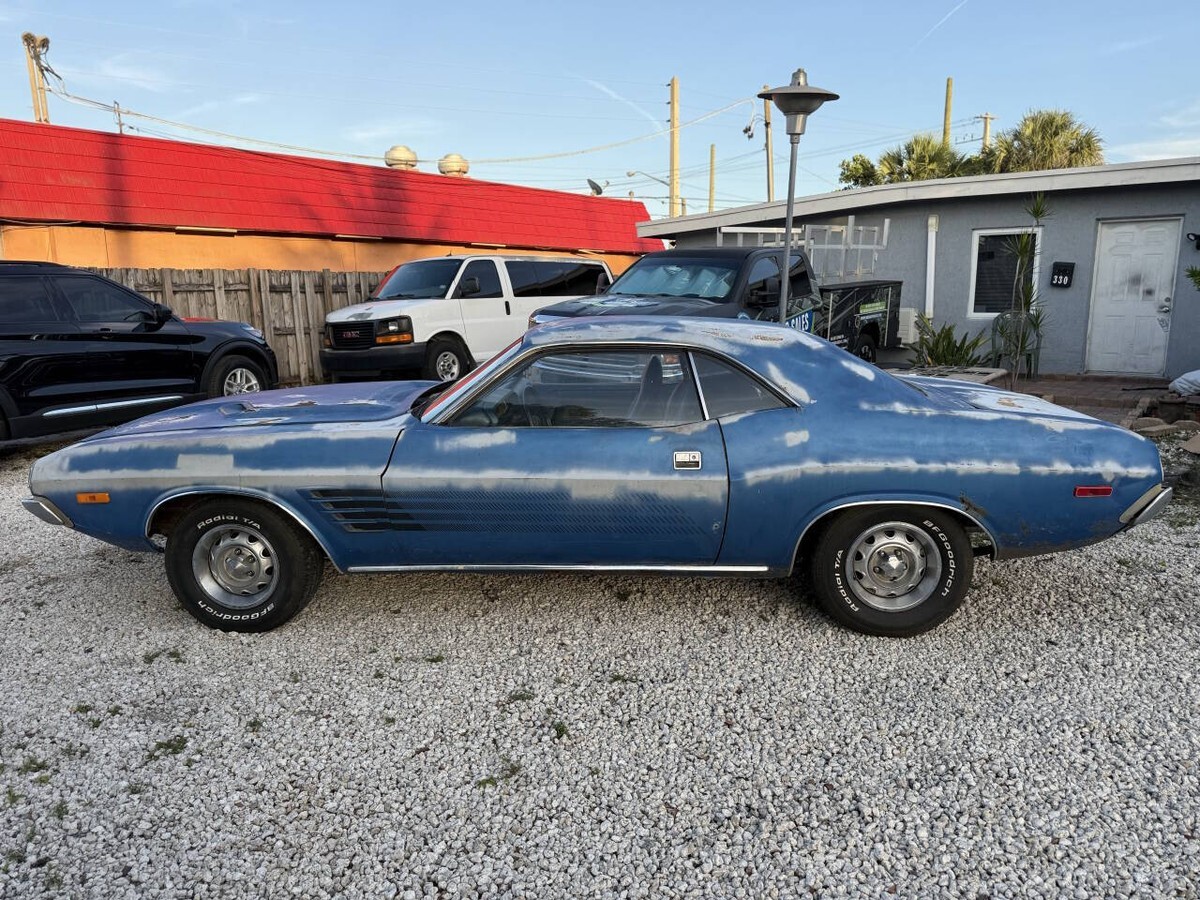 1973 Dodge Challenger H-Code V8 340 Cubic Inch Freshly Rebuilt With A Pistol Grip 4 Speed Transmission & New Clutch Assembly. Runs & Drives & Goes Through All Gears Very Nice. Super Easy To Drive As Well With Power Disc Brakes & Power Steering. Brakes Completely gone through, New Dual Exhaust System Sounds Great With Just the perfect tone, Dash Is New As Well. Original Color from Factory is B5 Blue, Original Fender Tag still present, All Hidden Body numbers match including vin on dash and door Vin. You can drive and enjoy while restoring This True H Code or enjoy it the way it is. I have some pieces of a build sheet that was found under seat that will be included. Brand New Blue Door Panels Will Be Offered to the highest bidder for a reasonable price, Clean & Clear Florida title In Hand ready for the new owner.