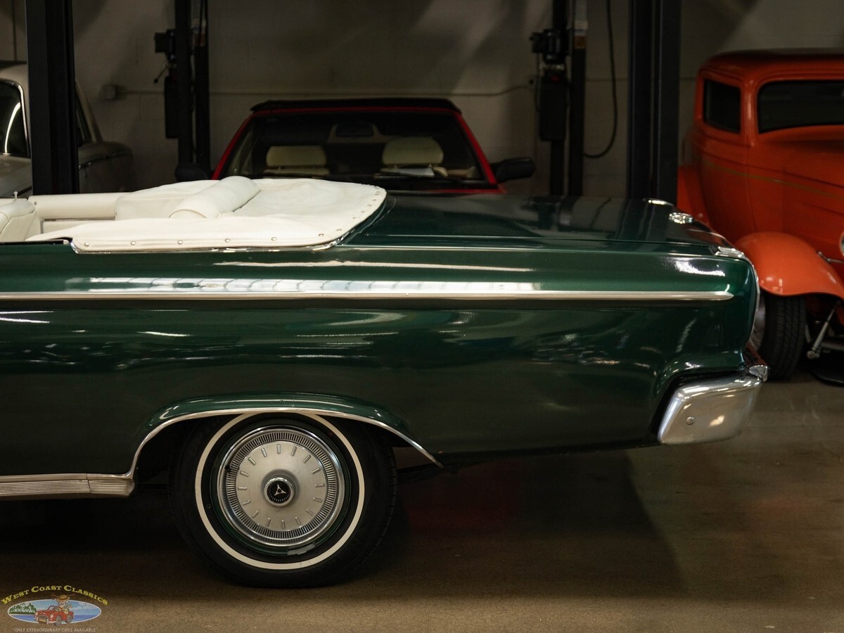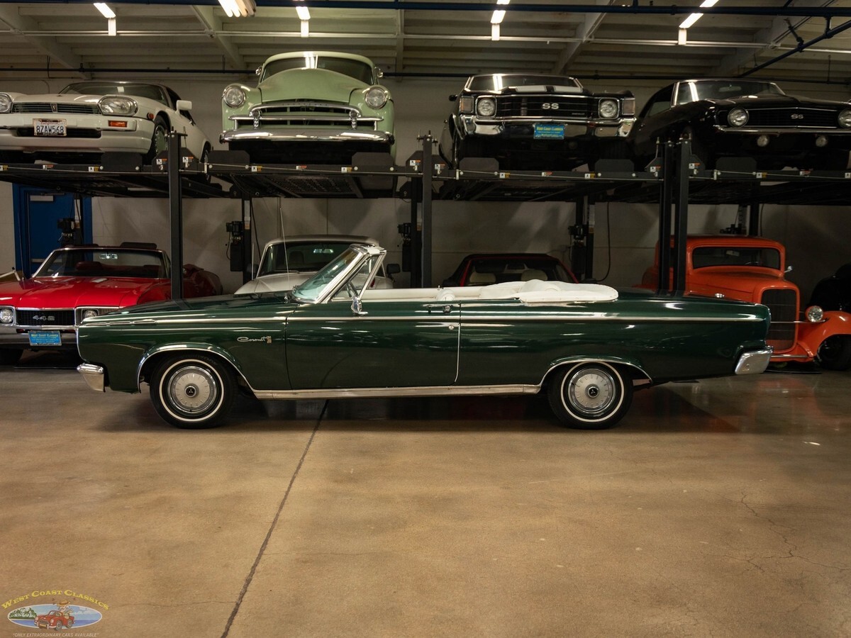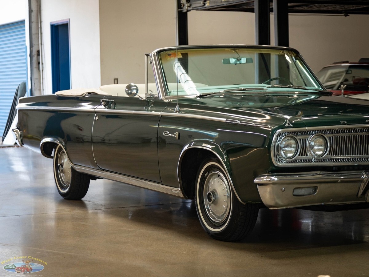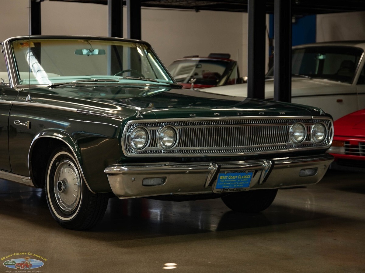 West Coast Classics are proud to present an exceptionally straight and rust free and great daily driving example of this very rare and mostly all original Mopar, a 1965 Dodge Coronet 500 2 Door 383c.i. V8 Convertible with the cars highly desirable 383/330HP 4 BBL V8 engine and Torqueflite automatic transmission.This 1965 Dodge Coronet 500 383 4BBL V8 Convertible is one very rare MOPAR, as there were only 474 1965 383 4BBL Dodge Coronet 500 2 Door Convertible's built to USA specs with about 185 4 speeds and about 287 automatics. Canadian & export figures are unknown. The 1965 Dodge street cars had a lot going for them, particularly the rebirth of the Coronet nameplate, which had last appeared in the late 1950s. The 65s had been restyled, and the Coronet title was riding on a 117 stock wheelbase with 204 overall length. This midsize model was available in the base Coronet (formerly Dodge 330 grade), mid-range Coronet 440 trim, and upscale Coronet 500 trim, like this particular example.The new 500 model was added as a sporty top line model and the convertible model replaced the 440 2 Door Sedan in the Coronet 440 line. The 500 added vinyl bucket sports seats, center floor console, deluxe door armrests, padded instrument panel, and deluxe spinner wheel covers.Standard equipment included:(61 code) 383/325HP 4BBL EngineCarter AFB 4 BBL carbsPower TopFront bucket seatsDual exhaustsPadded dashBright Aluminum full length body side mouldingElectric windshield wipersFull carpetingExterior bright trim around side windows & body sidesBack-up lightsHeater & DefrosterCompression Ratio 10.0:1Final gear ration: 3.23:1Correct Turquoise color enginePower Steering ($67)Music Master AM Radio ($45)383/330HP V8 Engine ($267)This car has been owned since new by obviously only two very careful and mature family owners and obviously has always been garaged from the elements and is 1 of only 287 built with the Torqueflite automatic transmissions.The car boasts the 383/330HP 4 Barrel V8 engine with the correct (2468130) casting number and its original automatic transmission. The car also boasts its original AM Music Master radio and heater. Reportedly the second owner purchased the car in 1975 and drove it as his primary car for about a year. He had acquired it from the original owner in Denver, Colorado, some little old lady, as the story goes. This second owner restored the car as required and had the engine rebuilt too. It sat in his garage as he rarely drove it and around the year 2014 he gifted it to his daughter and son-in-law. They embarked on a premium upholstery restoration after stripping the car to the frame in Visalia around the year 2015.The engine was rebuilt about a year ago and has less than 1K miles on the rebuild. The car also has a performance starter, aluminum radiator and reservoir, headers and a rebuilt carb. The master brake cylinder, power steering lines, tires and the gas tank have all also been replaced.This great driving 1965 Dodge Coronet 500 2 Door Convertible is a mostly all original rare survivor from this era and would make a wonderful daily driver for any Dodge or MOPAR enthusiast. The 383 V8 engine runs strong and sounds absolutely magnificent and this particular car drives really well - must be driven to be appreciated - does not miss a beat and purrs like a kitten - a truly remarkable daily driver that will give any modern day car a run for it's money!With very few remaining 1965 Dodge Coronet 500 2 Door Convertible with the desirable 383 V8 with 330HP, this is an extremely unusual opportunity to own a great daily driving example of this rare and very desirable sixties MOPAR with power steering in very fine daily driving condition ready and for any classic American car or Mopar enthusiast to enjoy or collect today!
