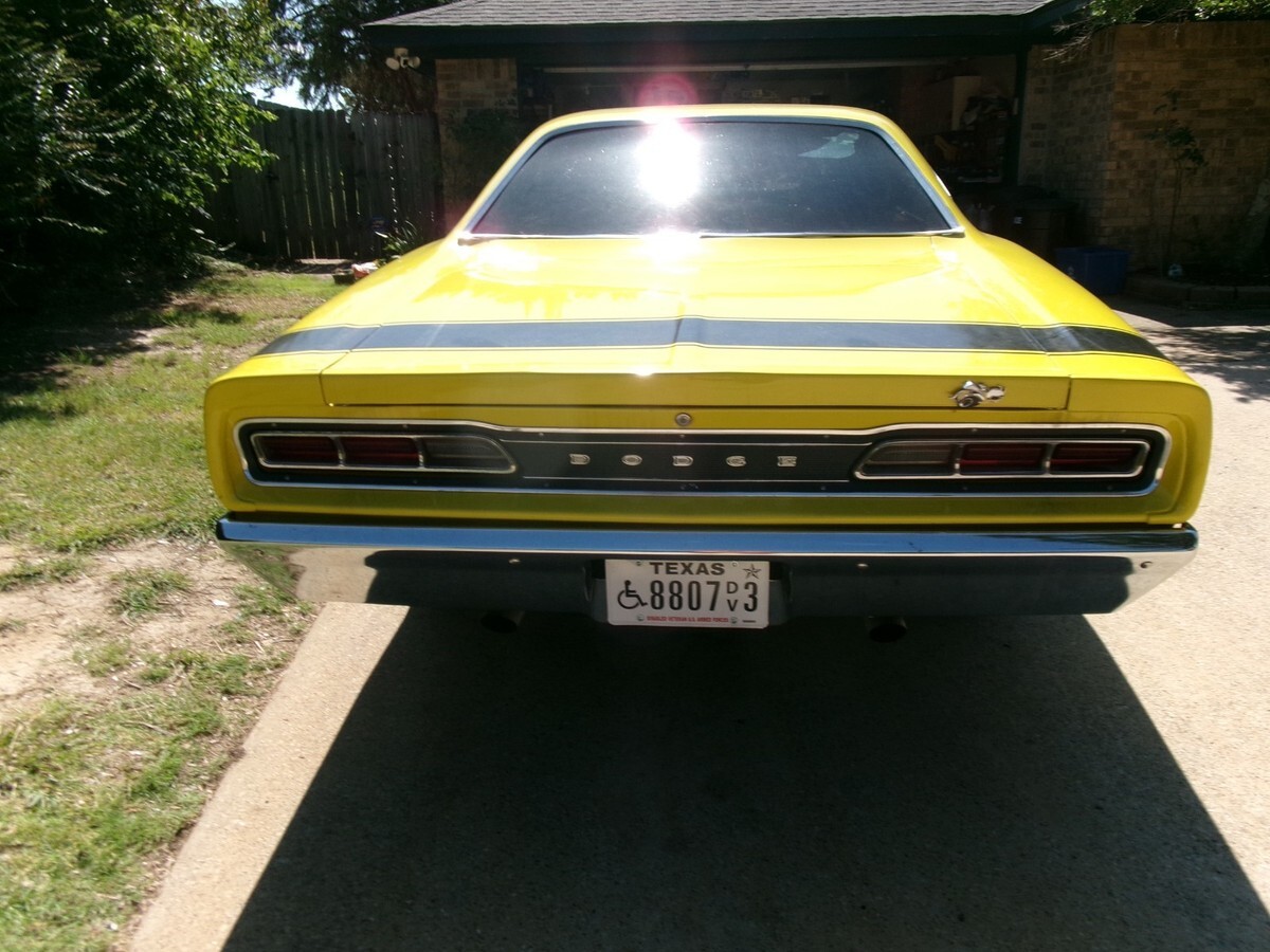Up for auction is a 1969 Dodge Coronet Super Bee A12 Clone. It is a very well done clone with a lot of attention to detail. This car can be financed thru JJ Best. I've only had it about 5 months but I've decided to build a Factory Five Racing 33 Hot Rod and can't afford to do both.I have a clean Texas title, and the car can be financed through JJ Best..This car started as a 1969 Dodge Coronet 440 with a 318 engine, auto transmission, AC, PS and AM radio. The previous owner built it as a street/strip car with a 440 engine built to A12 specs with correct Holley 3X2 carbs, high lift cam, 10.5 compression, solid lifters and headers with a new 3 inch exhaust system. The A12 engines are very rare and were built to run with 426 Hemi engines for about 1/3 the cost. The builder also installed a 8.75 positrac rear end with a Detroit Locker and 410 gears, modified A727 transmission, a 2500 RPM stall converter and a Line Lock. It was scary fast but hard to drive on the street due to the stall converter, the Detroit Locker and the modified transmission. I replaced the Locker and the 410 gears with a regular positrac and 323 gears. The transmission and the stall converter were replaced with a rebuilt TorqueFlite A727 Transmission and a factory correct Torque Converter from Summit Racing. The line lock was removed. Now the car is just very very fast but can be driven on the street with no issues. The builder removed the heater/defroster system to save weight I guess. This was fine for me because I always install a custom Vintage Air Gen 5 AC/Heater/Defrost system in the cars I buy. Summit Racing sells the system for approx $2400. The hardest part of installing the Vintage system is removing the old heater boxes under the dash.The AM radio has been removed and replaced with a oil pressure gauge and a extra water temp gauge. The original gas gauge and water temp gauge both work. The original 120 mph speedometer has been replaced with a correct 150 mph speedometer. All the light bulbs except the headlights have been replaced with LED bulbs. The original builder had it painted and installed new interior including new custom front bucket seats, rear seat covers, door panels, carpet and console with a custom shifter. The dashboard does not have any cracks or tears and the headliner is in good shape. Before painting, the body rear quarter panels and the interior floors and the trunk floor were replaced. The body work was very well done. New Coker tires with Cragar Wheels were installed. The car came from the factory with standard drum brakes all around. They were replaced with Wilwood Disc brakes on the front and the stock 11 inch drum brakes on the rear. I installed Power Brakes on the car. A new vacuum pump had to be installed because the motor did not produce enough vacuum because of the high lift cam.The suspension has been upgraded with correct heavy duty 6 leaf springs and heavy duty shocks on the rear and drag shocks on the front. The car drives straight and true and does not shake, shimmy or pull to the side. There is no rust anywhere on or under the car.The car runs, drives and sound exactly like what it is. It is a beast.This car gets more attention than any car I've ever owned. Anywhere I take it somebody wants to talk about it and wants to take pictures or videos. If I have it sitting in the driveway people stop to look at it.Almost everything I purchased for the car came from Summit Racing. Summit Racing has 4 retail stores in the country and one of the stores is about 10 miles from my house.I have over 52k invested in the car and have the receipts for everything purchased for it. The reserve price is what I have in the car.There are no door dings on the car but it does have a couple of minor paint chips.Please excuse the quality of the pictures. Please contact me at 972-709-8254 with any questions. Thanks for looking.