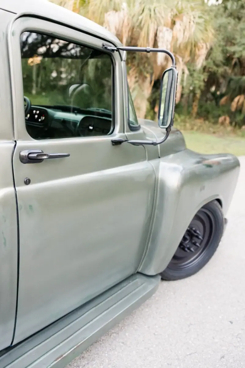 Wheels & Body Work For wheels, I went with Detroit Steel Wheels — 20x8 with 265/50 Toyo tires in the front and 20x10 with 305/50 Toyo tires in the rear. The original rear fenders were in rough shape, so I replaced them with fiberglass ones and widened them 3 inches to fit the 305s properly.