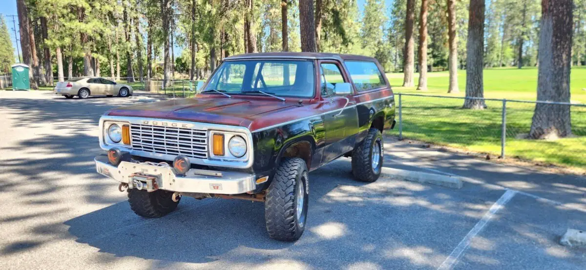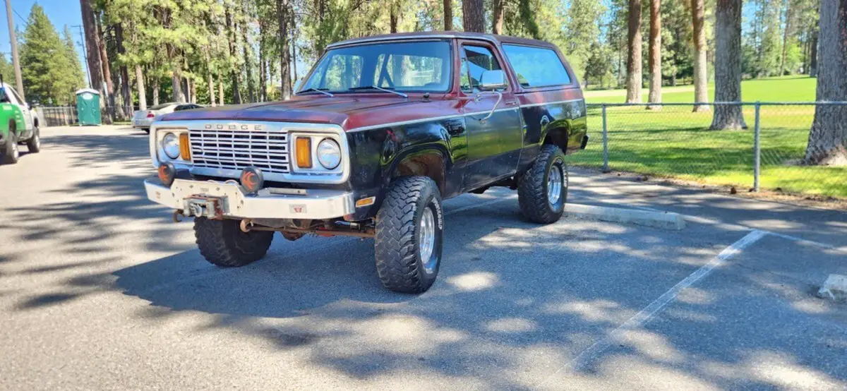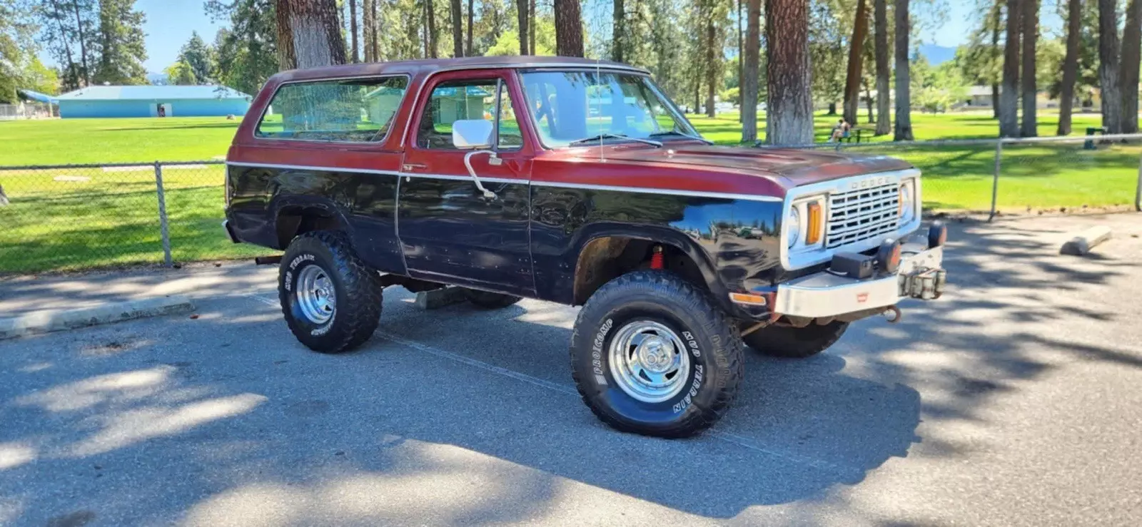 NO RESERVE! This 1978 Dodge Ramcharger SE is finished in its factory “Brite Canyon Red” paint, with the lower half painted black at a later date. This early production Ramcharger is factory equipped with a strong running 360ci V8, backed by a 727 automatic transmission, and NP203 Transfer Case. It runs, drives, and stops nicely and the hard-top is fully removable.