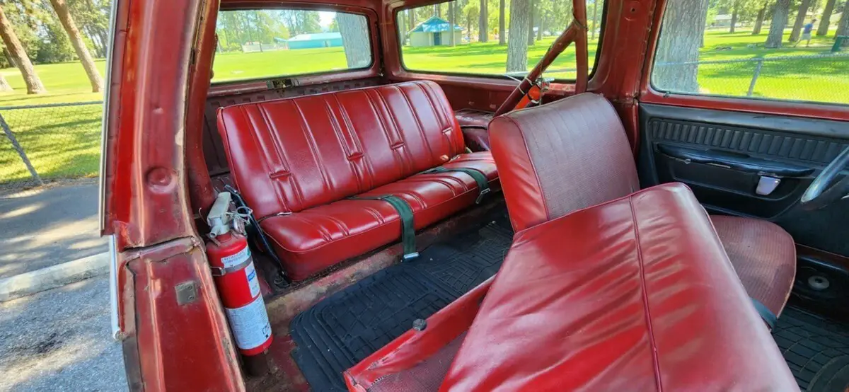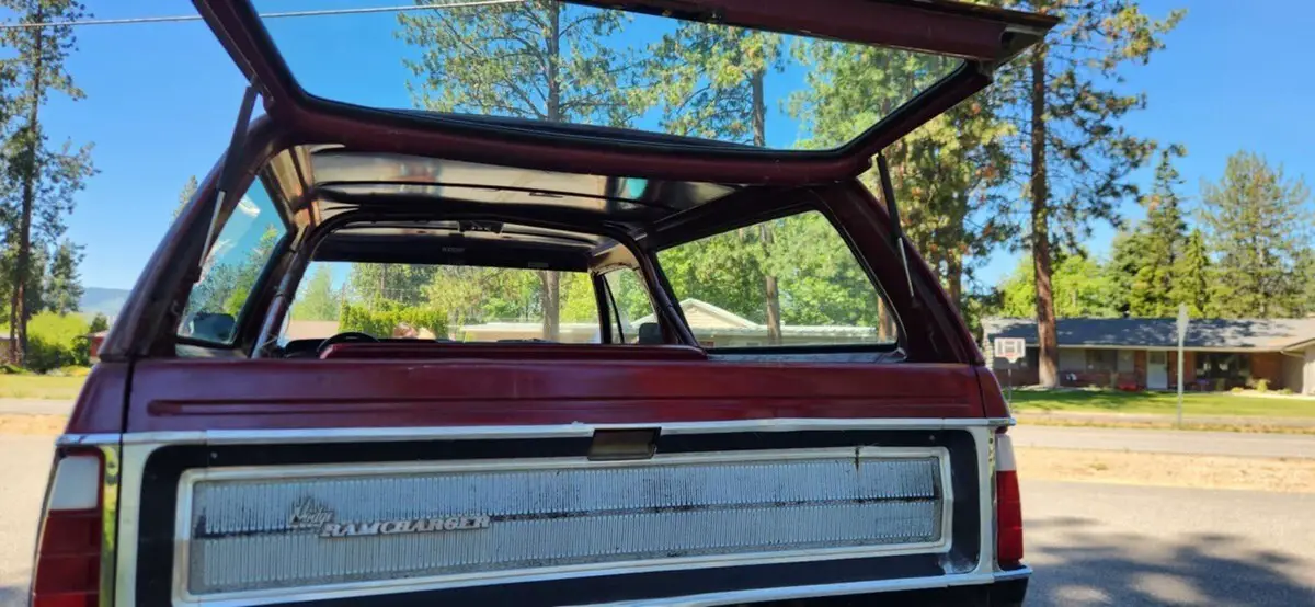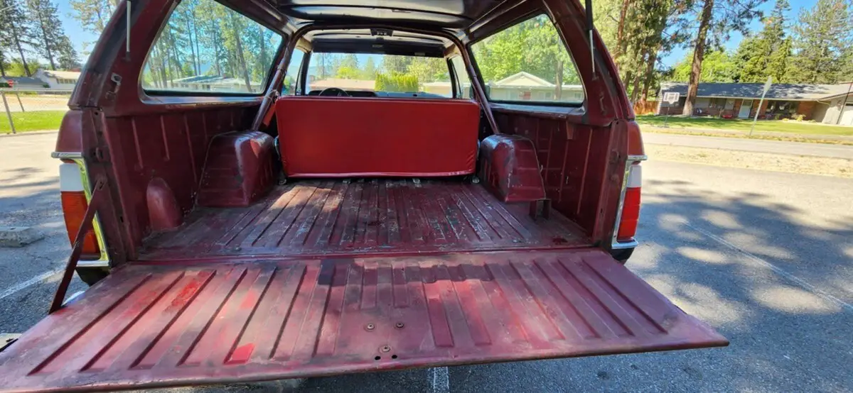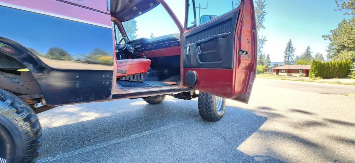 This RC has 35x11.5x15 Pro-Comp Mud-Terrain Tires and Chrome Saw Blade Wheels along with a 4” Suspension lift. The interior is red and has the factory front bench seat and rear seat. All glass is in good condition, the rear hatch functions properly but has a hole on the inside passenger corner. Tailgate functions properly with molding and decal.
