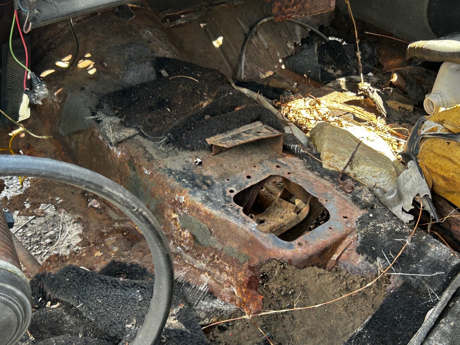 Driver's side rocker. cowl and firewall are decent, but will need repair.