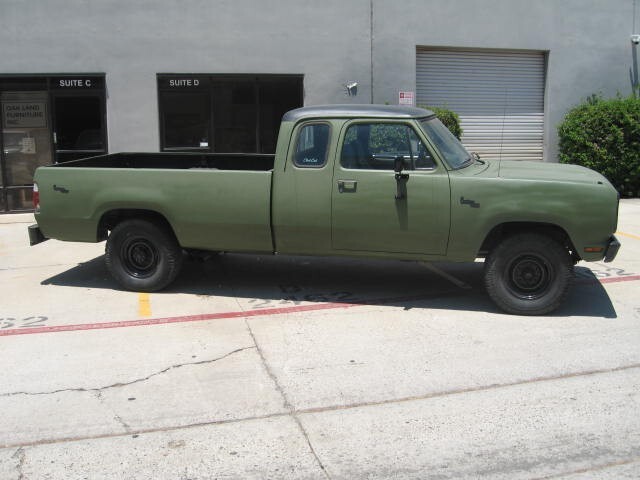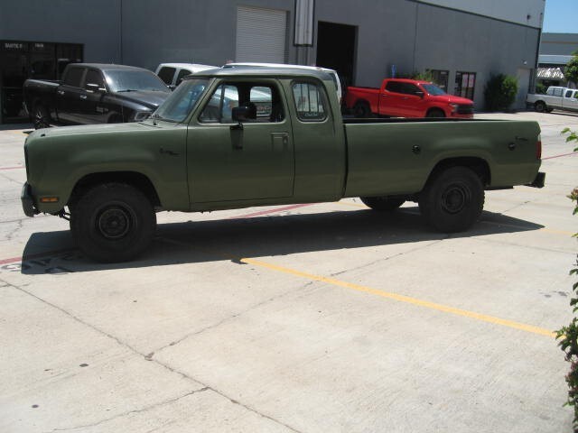 I have to sell my Dodge pickup. I need to finish my house, and I don't have time and money for both. It is a pretty cool old truck. You don't find many Club Cabs around, let alone a D200 Camper Special (Heavy Duty 3/4 ton). The 383 C.I. big block was just rebuilt with less the 100 miles on it. It has a Crower RV cam, Edelbrock aluminum intake and headers. The truck runs well, and the 727 transmission shifts good. I just had it sprayed Olive drab green and black with Raptor paint, (6 months ago). The headliner was just replaced also. This is a neat old truck that I wanted to bring with me to Oregon. Will have to do something else later.