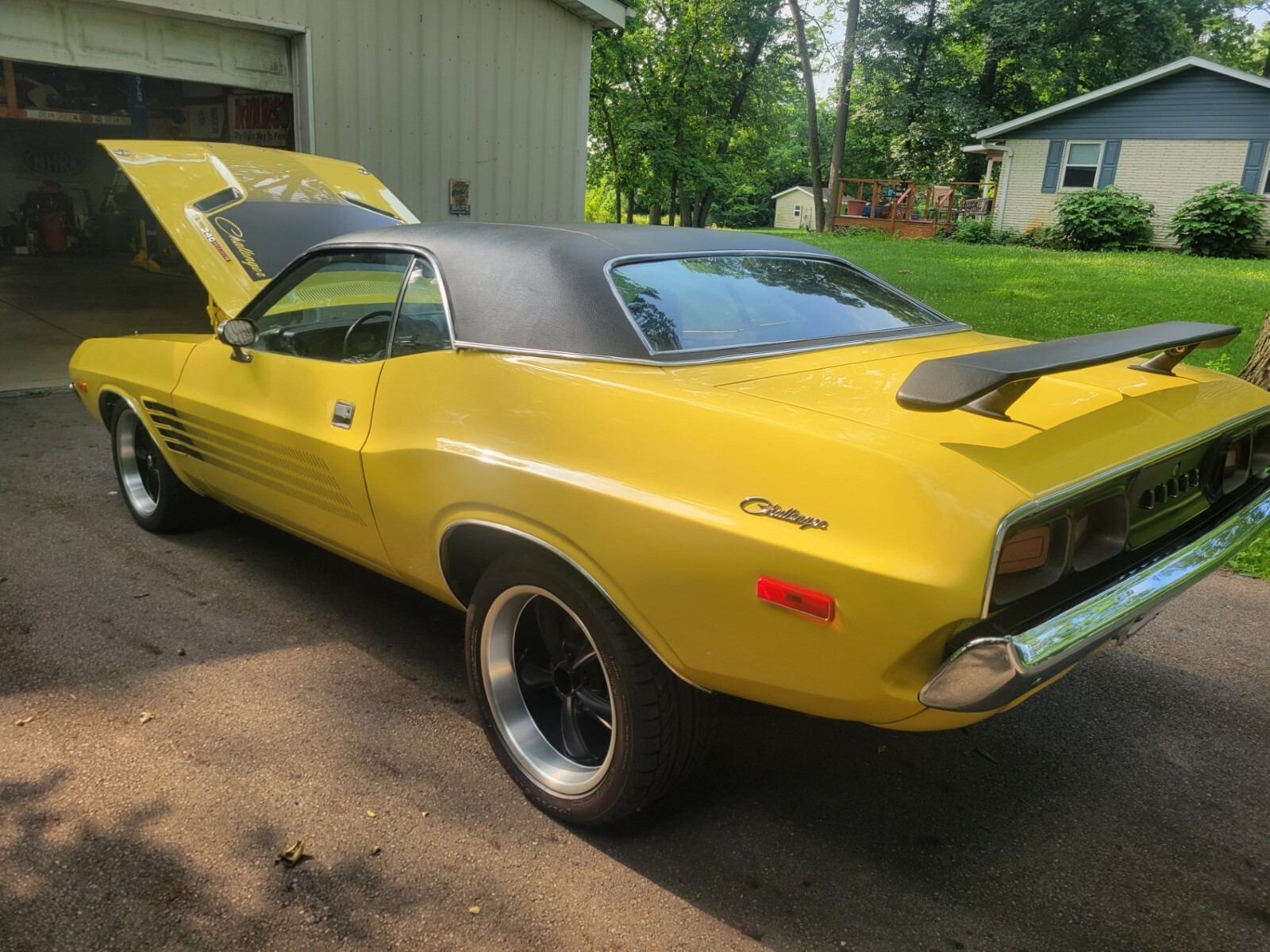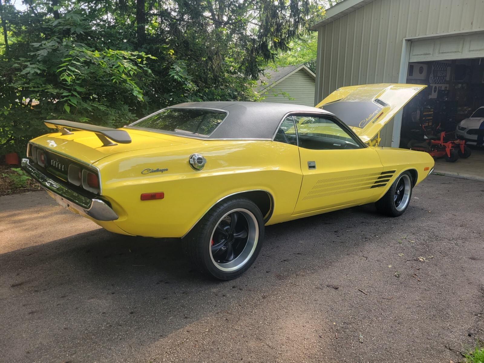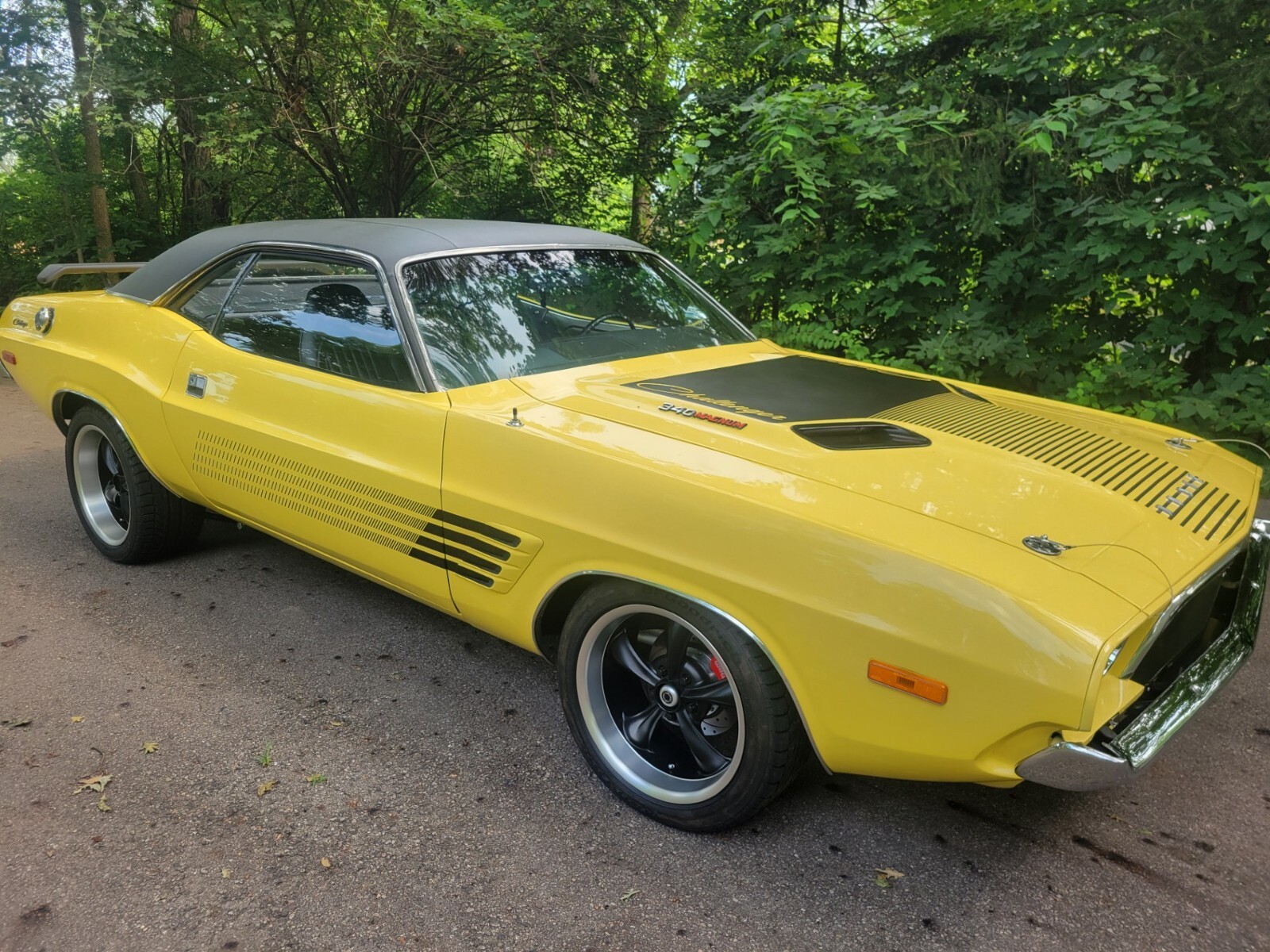 1973 DODGE RALLYE CHALLENGER RESTOMOD. COMPLETE RESTORATION IN 2023. FACTORY COLOR ( TOP BANANA ) WITH PERFORMANCE HOOD, 408 CRATE STROKER MOTOR WITH 530 HP AND 535 FT POUND TQ. 50 TOTAL MILES ON MOTOR. EVERYTHING NEW,ORIGINAL PISTOL GRIP 4 SPEED MANUAL SHIFTER AND TRANS. BLACK ORIGINAL INTERIOR, BUCKET SEATS, MOSIER CUSTOM BUILT POSI REAREND WITH 410 GEARS AND COIL OVERS. STRANGE 4'' DRIVESHAFT, WILWOOD DISK BRAKES ALL ( 4 ) WHEELS, 18'' TIRES ON REAR, 17'' TIRES ON FRONT, HEADMAN HEADERS WITH 3'' EXHAUST, HAYES COMPETITION CLUTCH AND PRESSURE PLATE, BLACK VIYLY ROOF. EVERYTHING UNDER CAR NEW. FRAME TIED, BEAUTIFUL CAR AND VERY FAST. TO0 MUCH TO MENTION A MUST SEE CAR ! ALSO HAVE ORIGINAL NUMBERS MATCHING 340 ENGINE TO GO WITH BUYER. SERIOUS CALLS ONLY.