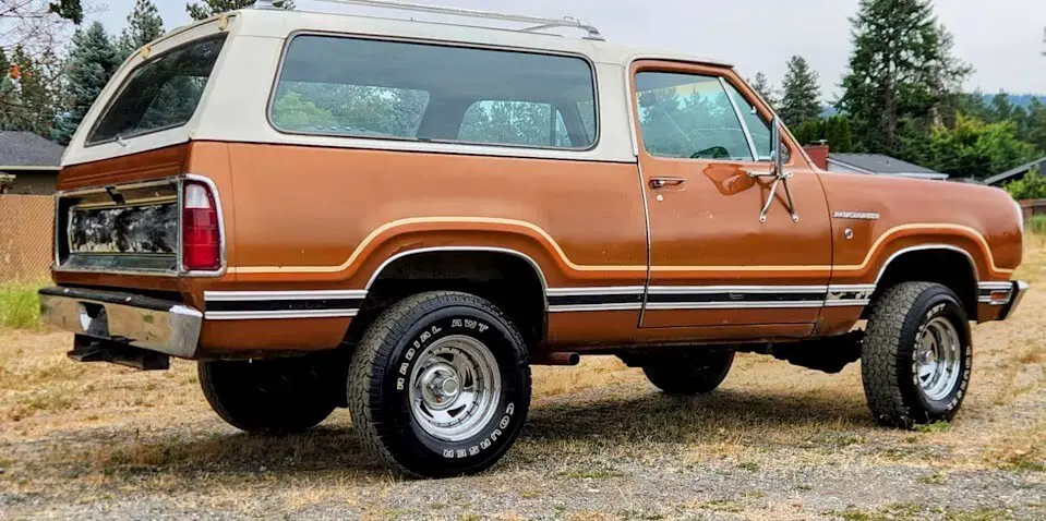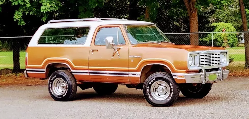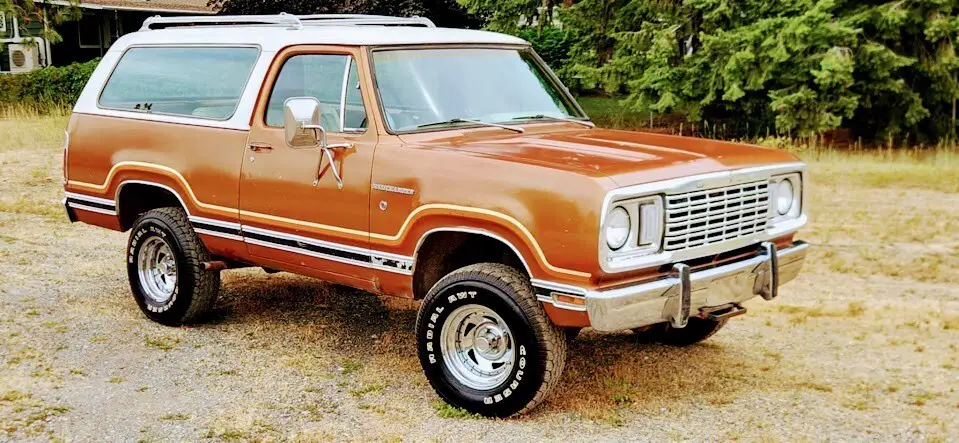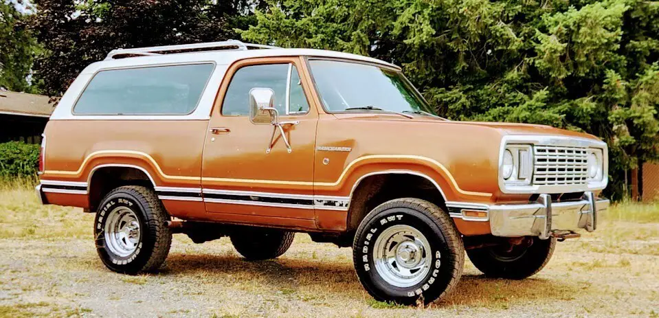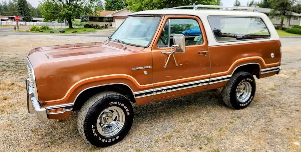 NO RESERVE AND SUPER RARE !This 1977 Dodge Ramcharger SE 4×4 SURVIVOR is powered by a factory big block 400ci V8 mated to a three-speed automatic transmission and a dual-range transfer case. Finished in it’s ORIGINAL Bronze Irid Paint with decals installed by the dealer, the truck is equipped with a white removable hardtop, chrome-finished 15″ slotted wheels, 31″ Courser tires, a receiver hitch, power steering, power brakes, air conditioning (All parts are present, but needs tested), woodgrain interior trim, a center console, and a rear bench seat. This Ramcharger has a clean title and runs great, drives and stops as it should.