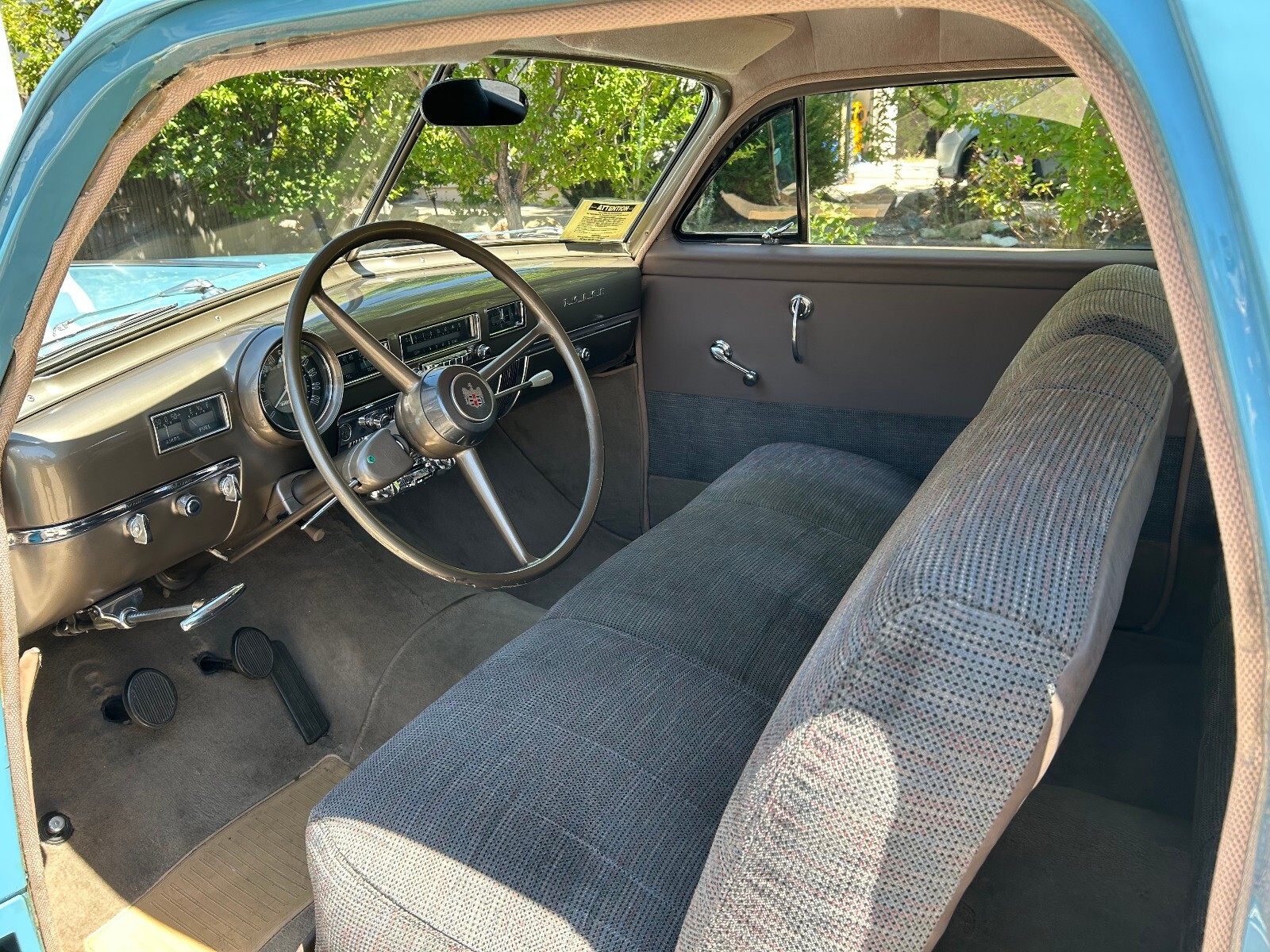 This car was purchased new by my wife’s grandmother in Iowa in 1951. I have all the purchase documents. We inherited the car upon her death in 1973 with approximately 30K miles on the odometer. It sat in a barn until 1999 when we brought it to Reno. The car was frame-off restored. The engine was rebuilt, blueprinted and balanced. The entire drivetrain was refurbished. The suspension and brakes were rebuilt and with new stainless tubing for the brake and fuel lines. All new wiring was done with the correct stock color coded cotton covered wire. Nothing was left undone. The body had rust and all those areas were cut out and new steel welded in. There is no rust on the car. Many areas in the engine compartment are powder coated. Paint is the original color, and a clear coat added that was hand sanded and polished, making for a beautiful smooth finish. All chrome was replated and the stainless trim was polished and all dents removed. All glass was replaced except for the rear curved window with all new gaskets. The dash is the original color but the interior was completely redone with newer fabric much like the original in color. All gauges and instruments are original. Carpet was added. Wheels and hubcaps are original to the car but repainted/rechromed. Tires are original bias type with 4.25 inch whitewalls. The 230 cid, 103 hp flathead six with the original carb runs flawlessly and is mated to the original 3 speed column shift Fluid Drive transmission. The engine was converted to run on unleaded fuel. Brakes are excellent. The car has been converted to 12V but the battery appears as the original 6V. The only other change was in the interior cloth and carpet. Otherwise this car is very stock and now has 37.2K miles. My age and health conditions force this sale.