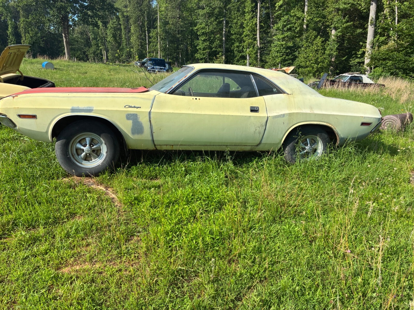 1970 Dodge Challenger rt Very solid project cars is complete minus drivetrain has very nice original interior other than a normal cracked dash. I don’t believe the headliner even has a rip car 77,000 miles some change Originally DY3 lite yellow striped delete with a 383 magnum in an automatic transmission . I have build sheet and fender tag. Car was painted black under the hood. I took a power washer to it. and got most of the black off super solid super solid! frames and floors are in great shape Probably wouldn’t even need a trunk pan. If not, for the fact, someone put a piece of shag carpet which held moisture and called heavy surface rust no gaping holes Just rough! With surface rough floor pans are super nice. This is a very solid complete project. Missing pretty much nothing other than the drivetrain I have drivetrains in parts cars in the backfield and if a drivetrain is needed, I can sell a drivetrain with the car for an extra price. But car comes with no motor no transmission Car is for sale local I reserved the right to end auction at anytime. Car sold as is where is with no warranty a 10% deposit is due within 48 hours of end of auction remaining balance is due within seven days 804-937-2497.