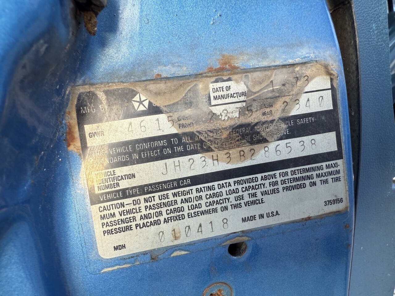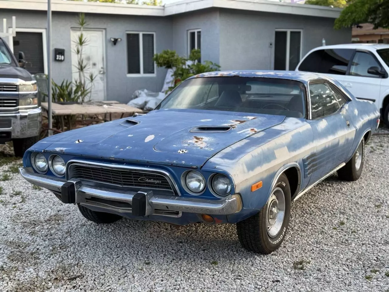 1973 Dodge Challenger H-Code V8 340 Cubic Inch Freshly Rebuilt With A Pistol Grip 4 Speed Transmission & New Clutch Assembly. Runs & Drives & Goes Through All Gears Very Nice. Super Easy To Drive As Well With Power Disc Brakes & Power Steering. Brakes Completely gone through, New Dual Exhaust System Sounds Great With Just the perfect tone, Dash Is New As Well. Original Color from Factory is B5 Blue, Original Fender Tag still present, All Hidden Body numbers match including vin on dash and door Vin. You can drive and enjoy while restoring This True H Code or enjoy it the way it is. I have some pieces of a build sheet that was found under seat that will be included. Brand New Blue Door Panels Will Be Offered to the highest bidder for a reasonable price, Clean & Clear Florida title In Hand ready for the new owner.
