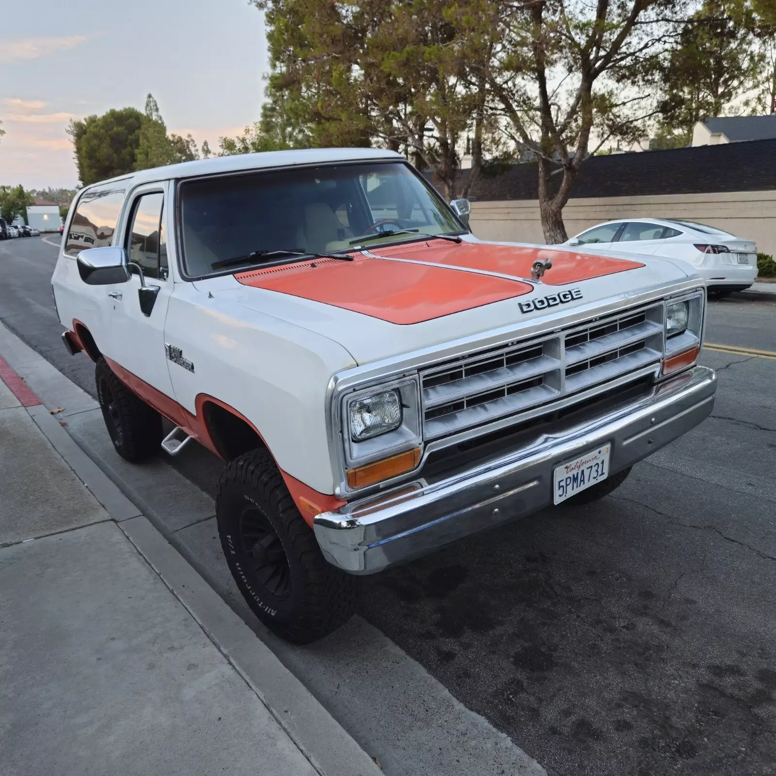 The 1989 Dodge Ramcharger AW150 is a collector car with a tan interior and white exterior. It has a 5.2L Mopar 318 V8 engine, automatic transmission, and 4WD drive type. This SUV has been registered in the USA with 4 previous owners and has a mileage of 172955. It comes with features such as AM/FM Stereo, CD Player, Air Conditioning, Trailer Hitch, Tinted Rear Windows, Cloth seats, and Tow Bar. The vehicle title is clean, and it does not have a service history available.