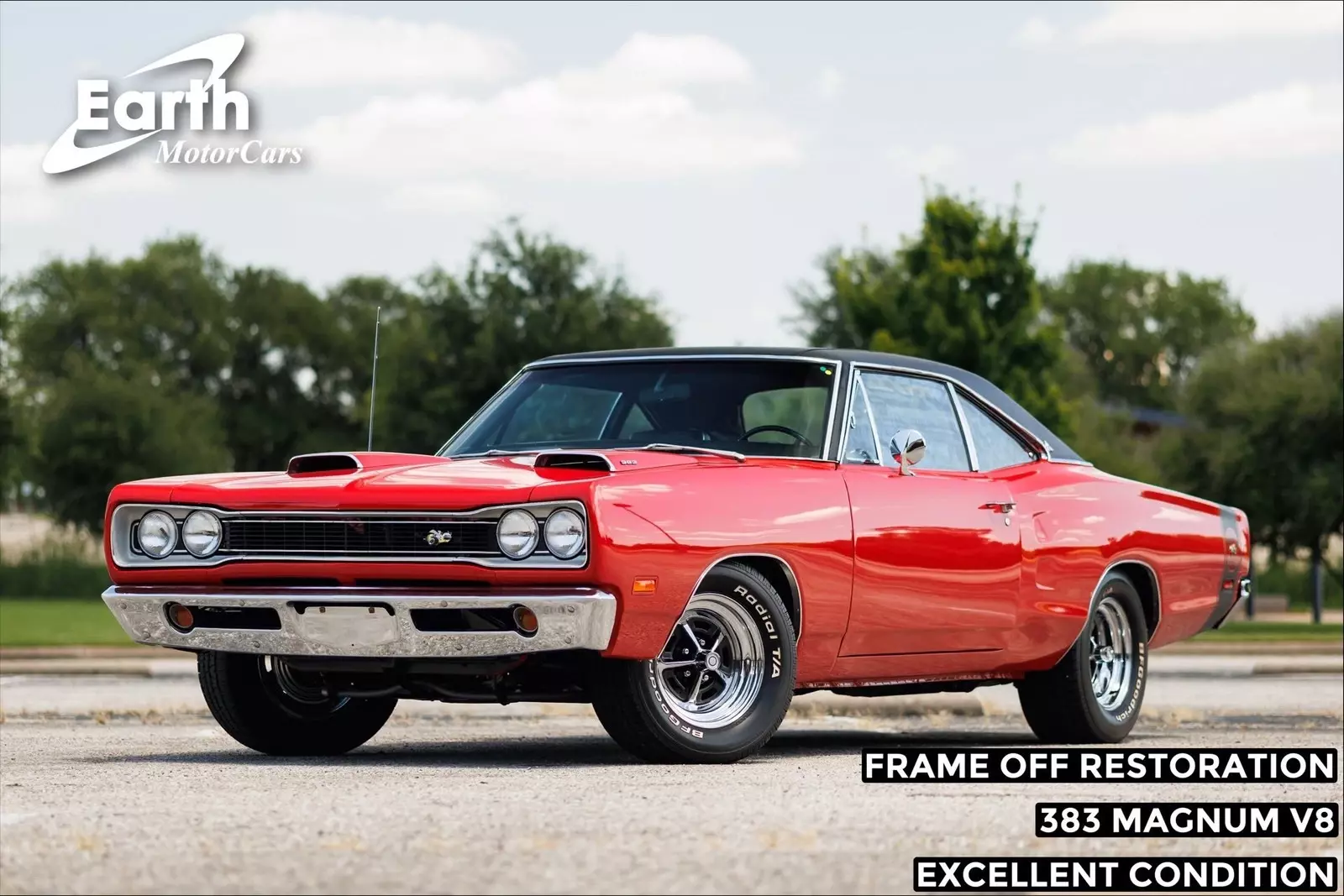 Earth Motorcars is excited to offer this amazing: 1969 Dodge Coronet Super Bee Frame off Restoration.Ready to show anywhere. "Float like a butterfly, sting like a bee," was how prizefighter Muhammad Ali once described his boxing actions. For fans of the Dodge Super Bee, float might have been more like an "Iron Butterfly," but this 1969 edition is a stinger for sure.Features:Frame off restorationEast Texas car383 CI H.O. Magnum V-8 Engine4-Speed Manual TransmissionHedman Hedders Short TubeMopar Intake Manifold #2808178Edelbrock CarburetorOE Radiator // Clutch FanHeat and Defrost OnlyPower SteeringFront Disc Brakes // Wilwood Prop. Valve with Knob AdjSuspension in excellent condition!Nostalgic Red ExteriorAll Black InteriorFront Bucket Seats w/HeadrestsWoodgrain Center ConsoleRear Bench Seat & SeatbeltsFactory Gauge ClusterAM Radio10-Bolt Rear End 3.55:1 GearsH-Pipe // Dual Flowmaster Mufflers15" Magnum 500 Chrome WheelsBF Goodrich Radial T/A White-letter tires255/60/15 Front 275/60/15 RearRestoration receiptsBadged as a 383Hood PinsChrome Bumpers and TrimWipers inopAll of our classic cars go through our rigorous inspection and items that need repair get fixed unlike cars bought at auctions, So rest assured that you are getting a quality classic car! All classics are sold Miles Exempt regardless of what the odometer shows. This vehicle may be eligible for our EXTENDED WARRANTY that covers a wide variety of components (certain exclusions apply).....Please ask your sales representative for details. Welcome to Dallas Fort Worth's Premier Lotus, Luxury, Exotic and Classic Cars Dealership. We specialize in offering the Finest Vehicles, Providing Outstanding Customer Service, Obtaining the Best Financing Options and Stocking a Large Selection of Luxury Vehicles, Exotics, Classic Cars and More! See for Yourself what Thousands of Customers have Discovered over the Years and Make your Next Purchase from Earth MotorCars! Our Goal is to Make you a Customer for Life! Learn more about us by calling 214-483-9040 or via e-mail at . Visit us on our Website at