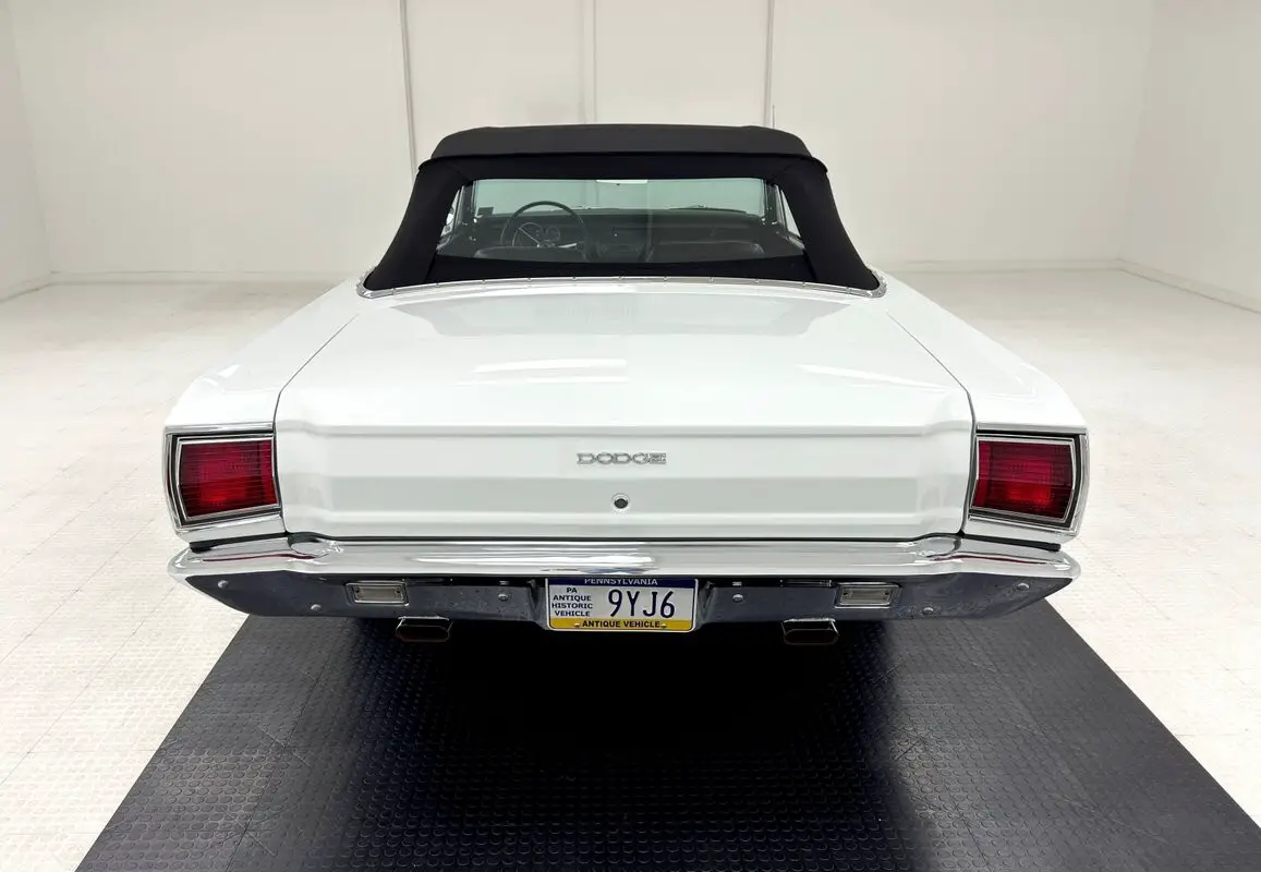 Modern paint systems make old cars pop, and that's the case with the two stage white paint on this square bodied beauty from '67. The faux hood ducts are a not so subtle inference that something wicked might live under that hood as the rest of the car presents as a common, but sporty commuter car, especially in convertible form. That black canvas top is in nice shape and provides a good sized rear glass window. Up front, marker lights are sculpted into the undulating grille as round headlights surge forward over a straight chrome bumper. Jumping to the rear, square tail lights are muscular in their simplicity and another chrome bumper shines bright. Mopar Rally wheels look fantastic and are staggered, 14-inch front and 15-inch rear. The trim and paint are very nice on this car and we could not find any exterior imperfections.