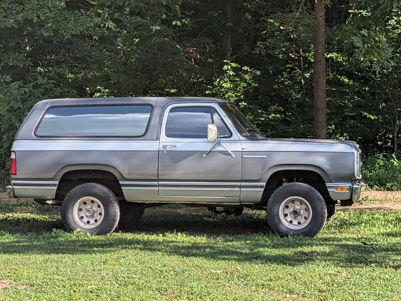 1980 Dodge Ramcharger 4x4 5.9/360– last year with the removable top and fold forward rear bench seat. Two -tone grey and silver. I have owned it since Oct 2010 and it is a great and solid truck. 360 with a 4-barrel carb and dual exhaust. Runs strong and usually starts quickly. It was mostly a weekend truck driven for fun for the last 15 years. I don’t have to sell it, so I won’t just give it away. It rides like an old muscle car to me with 31-inch tires. 4x4 works great with locking hubs. New brake booster and brakes all around. This had just the lap belt when I bought it and I put a more modern seat belt in the front and modified 2 harnesses and one lap belt in the back for my kids. My kids loved riding around in this truck especially with the top off. Burgandy interior that is in fair condition. The seats have minor rips in them and the dash is in most good shape with some splitting on the glove box. I modified another console that I bought since the old RC ones are near useless. I still have the old one and it is really good shape and comes with it. The one in the truck has deeper cup holders and speakers in them. 360/5.9 is not the original and supposedly from a 74 Roadrunner. Runs strong. No catalytic converter. Odometer was disconnected when I got it and shows 57,859 miles. Fuel gauge doesn’t work, transmission pan leaks but hasn’t been a problem, trans is still strong. The heater core was bypassed so the heat won’t work unless you fix it. It has the factory air conditioner, but I think the compressor probably needs to be replaced. The tires will need to be replaced soon if you keep the 31s. I was going to convert to 33s if I kept it but I was also worried it would lose that muscle car feel to the way it rode. The truck was repainted before I got it 15 years ago but according to the previous owner never had any Bondo or rust treatment. I ran a magnet over before I bought it and seemed ok from what I could tell. Drivers side floorboard will eventually need replacement but the metal around it seems to still be in good shape. Passenger side floorboard may need a patch at some point, but I don’t think it will need a total replacement. Other than that, the only rust is minor mostly surface rust on the bed rail under the top. I always took the top off during the summer and kept it in the garage or under a pavilion when I did. For approximately 10 of the 15 years, I have had it was in the garage or under the pavilion. This truck has never seen salt roads to my knowledge. It was a Utah and Arizona truck and when I purchased it. I registered it in NY, but it spent very little time there as I moved to VA and didn’t drive it in bad weather in winter. It is just showing a little rust on the rocker panel on the driver’s side that you can see in the photo.That has only been showing for the last 6 months or so.The last 3 photos that are attached are from within the last 2 years, and the rest were all taken this week. I will try to get more photos of the undercarriage. Frame is in great shape. Overall, a great truck and would make a great restoration project or just drive it like it is. Cash in person or cashier's check for payment method only.