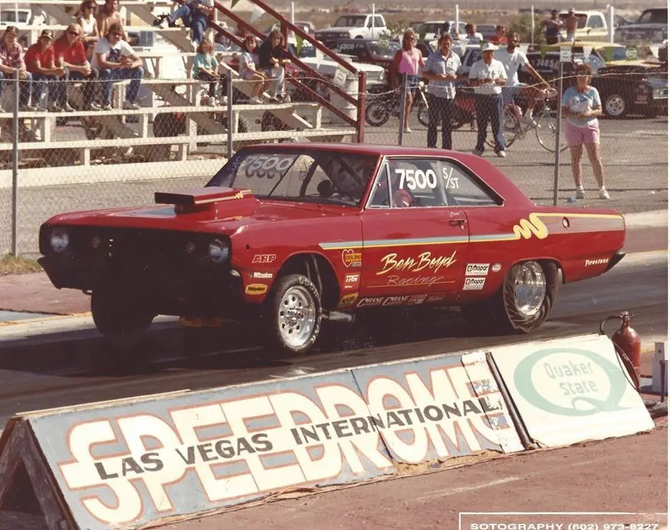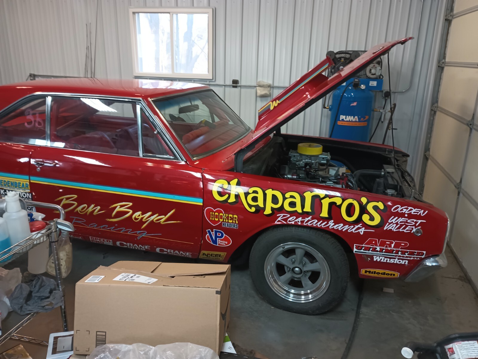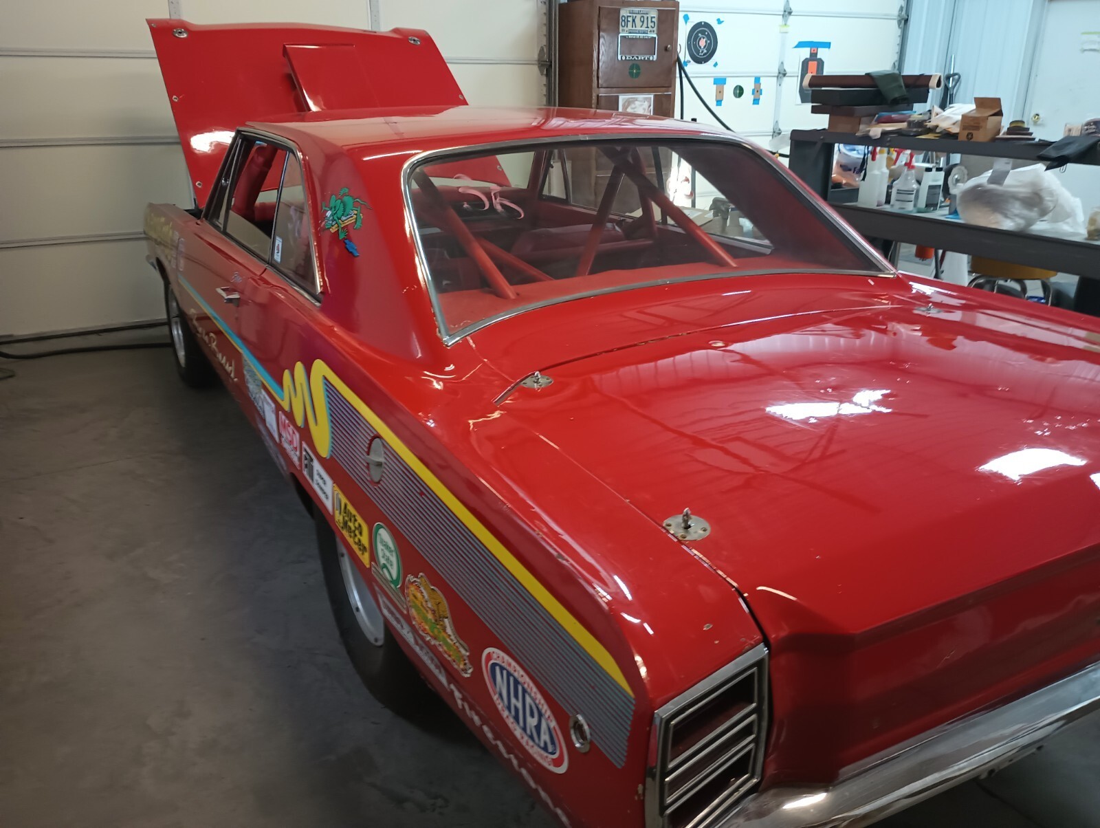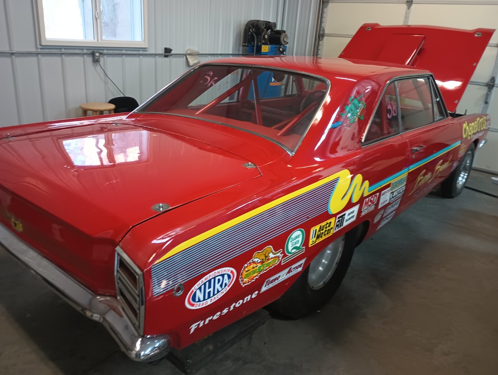 This 1968 Dart GT is the ultimate definition of fun. The sound of the engine with the highlift Luminati cam will jump start any weak or slow beating heart. This vehicle has made memories for past owners at many division 6 drag strips and the great salt flats. Rumor has it was once raced by the great Les Norton and then sold to the legendary Ben Boyd whose name still adorns the doors of the car. This car is truly nostalgic, from the original hand painted rat trap on both side sail panels to the original Winston cup drag racing series decals on the quarters.The car was raced on 1/8 mile tracks a few times running high 6 seconds. Last ran 2016 at Garfield Ave street drags in Duluth, MN. The car has a 440 ci, electric fuel pump, electric water pump, headman fender exit headers, 3 speed reverse valve body transmission with cheetah shifter, roll cage, 516 geared spoolie 489 8 3/4" Chrysler rear, front disc brakes, 4 link rear suspension, 8 gallon aluminum fuel cell and dual batteries. All rewired with breakers, msd distributer and ignition box. Licensed and titled.