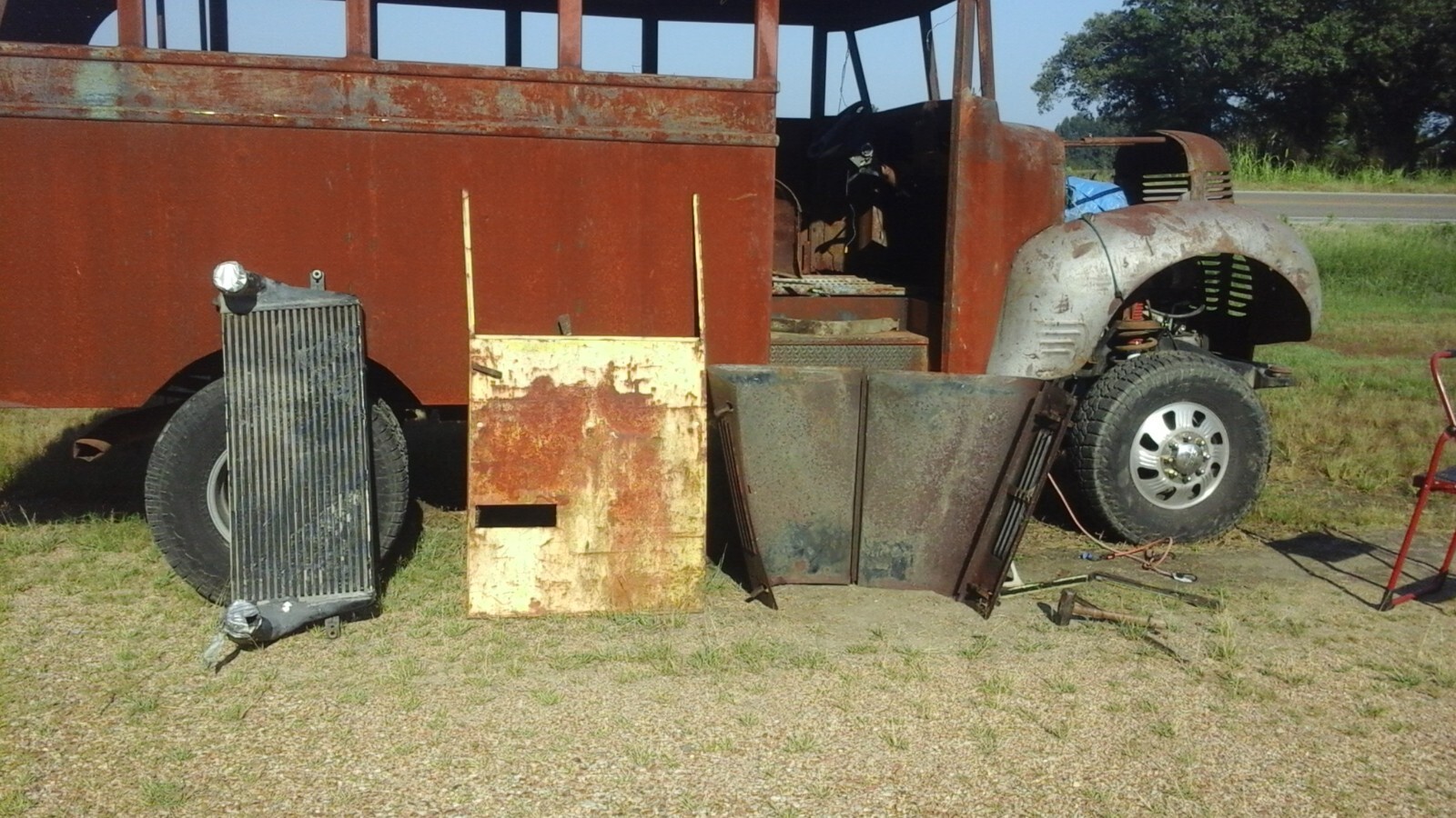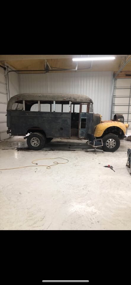 1946 DODGE SHORT BUS--- CUMMINS DIESEL ENGINE----NEW 10 GAGE SHEET METAL BODY---WIDENED TO FIT ON 2000 RAM 1 TON DUAL WHEEL CHASSIC 4X4---RAM 3500 ---- CUMMINS DIESEL---- was running 5 years ago when project was started---auto trans. 4X4----needs front frame horns trimmed so grill & fenders can fit----2 EXTRA FRONT FENDERS INCLUDED TO WIDEN FRONT TO FIT OVER TIRES----NEW EAGLE ALLOY WHEELS & FALKEN TIRES----SET UP FOR RADIATOR & INTERCOOLER TO BE REAR MOUNTED---SEE LOUVERED PANEL ON REAR----ALL WORK DONE BY FABRICATION SHOP----WIREING HARNESS & COMPUTER INCLUDED--- new 4x8 sheet of 10 gauge metal---new door hinges-----TOO MANY PARTS TO LIST----1946 DODGE TITLE----2000 DODGE TITLE--- no idea where numbers are at on body or frame-----no cell phone--listed on computer, so expect answers to questions morning and after work----payment by cash---check---pay-pal--money order----when cleared---steers and rolls for shipping---LOCATED PIGGOTT ARKANSAS----NEAR MO. & TENN.----NO SECURE PURCHASE----DONT NEED THAT ---look at my sellers record------BUS IS JUST OVER 19 FT. LONG
