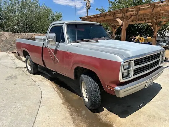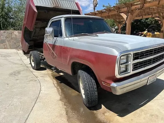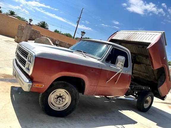 1979 Dodge 4x4, customized, added front hubs switchable to off 4X4 reduces gear wear when driving exclusively in 2x4 mode, Custom built dump bed, holly carb, recently replaced hoses belts, engine parts, holly carburetor, has A/C and it blows very cold, 360 V-8 5.9 liter engine, extra new parts and replaced parts included, push button electric dump switch, dump bed tool box, 4x4 tires, 75% interior pretty fair, a bit of driver climb in wear, Am Fm cd player, ceramic tint on windows, slide back window, I'll add more photos and a video later.$10,500 O.B O. Located in high desert Ca, California truck,no rust. everything works runs good