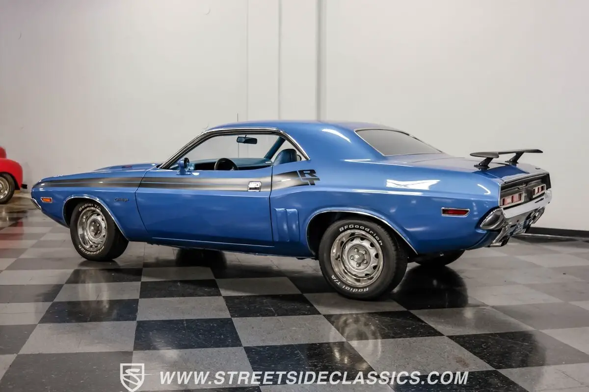 There's a reason that the Dodge Challenger had a headlining role in several of the Fast and the Furious movies. Love them or hate them, you can't argue with their choice in classic muscle cars. While you won't see it flying over any buildings, this numbers-matching 1971 Dodge Challenger R/T is ready to take a starring role in your collection. Fully repainted in its original Brite Blue Metallic, the '71 model is the final year of Chrysler's high-compression motors, and the last time the first generation of Challengers could be optioned with the Road/Track package. With its heavy-duty chassis, aggressively styled hood, rear spoiler, and graphics, it's easy to see why this car is loved by audiences on and off the screen.