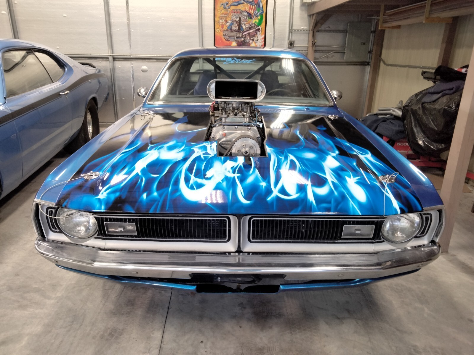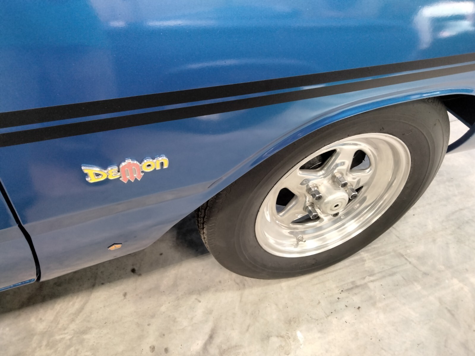 71 Dodge Demon original 340 4 speed car,it now has a 440 with a enderle blower,offenhauser intake,competition 600 cfm 2 x 4 BBL.carbs,Mopar valve covers, adjustable rockerarms,headers,deep oil pan,new alum.radiator,dual electric fans,alum.race high flow water pump,rebuilt 727 auto trans.with tci manual reverse valve body,tci 3000 stahl converter,b&m shifter,new dual batteries in trunk with 2 Holley fuel pumps,fuel cell,race bucket seats,auto meter gauges,msd ignition box,painless wiring switch panel,tubular upper control arms,new ball joints,and new lower control arm bushings Alston chassis 12 point cage,frames are tied front to rear,Alston 4 link,8-3/4 5:13 sure grip rearend,car is back halfed,pro star wheels front and rear,new front disc brake calipers,tubbed,steel tubes,wheelie bars,parachute,car is all steel,except for the hood and rear decklid is fiberglass,new 70 go-wing,it has all the original glass,with rally dash,with new dash pad and vin tag is on the dash with clear Florida title in my name,There has been a ton of work done to this car,it would make one hell of a pro street car or drag car.This car has a wrap on it with side stripes and tail stripe.This car sounds and runs like a beast.