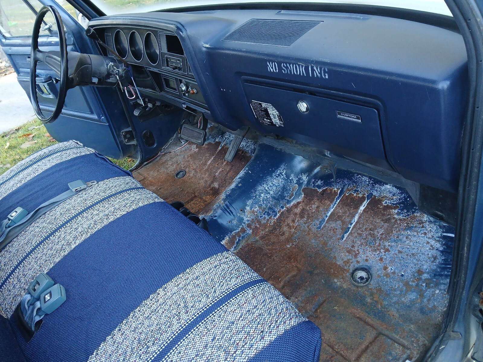 Very straight body, with only damage on the passenger side door and only rust through is on the drivers side floor panel but no bondo anywhere on this truck!