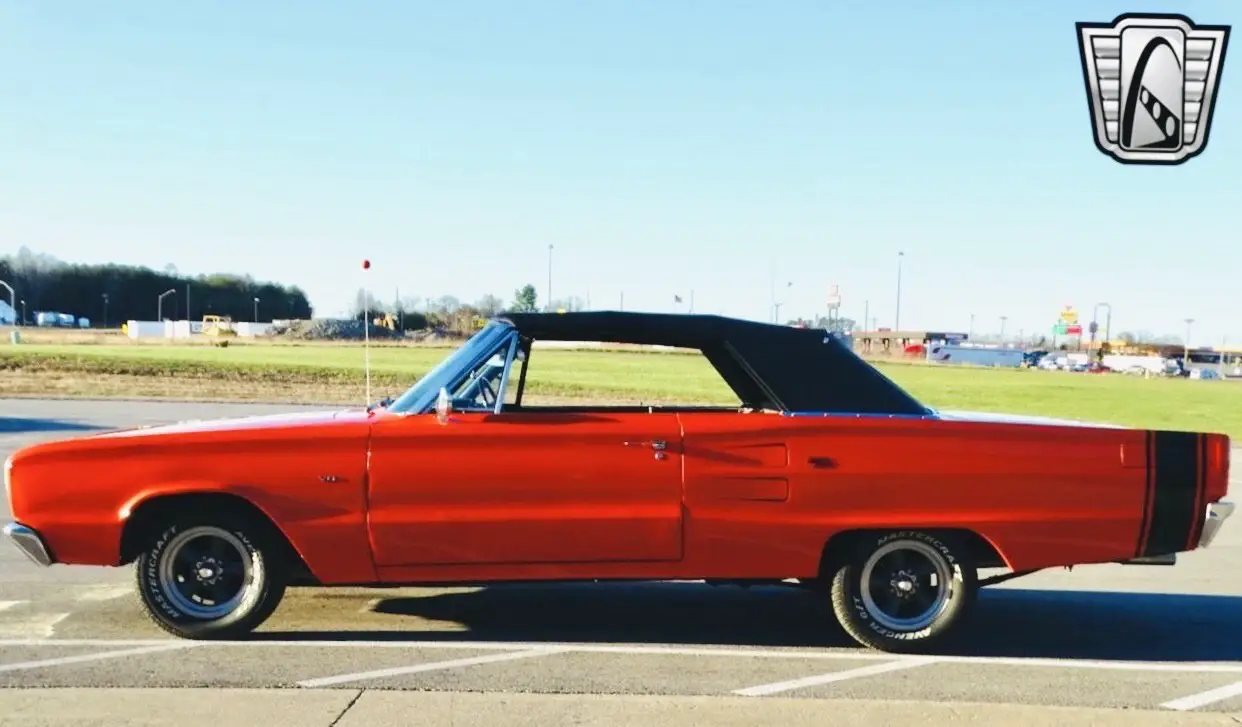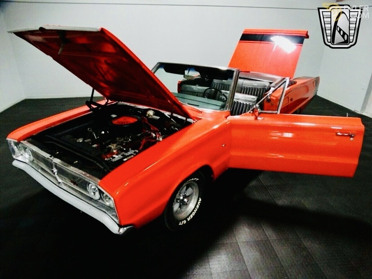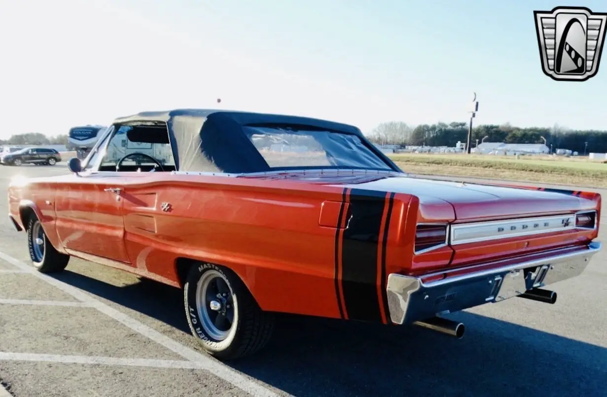 Step into the classic era of American muscle, 1967 Dodge Coronet 440 R/T Tribute Convertible. An embodiment of nostalgia and power. Dressed in a vivid Grabber Orange exterior and paired with a sleek black vinyl interior, this beautiful convertible captures attention and admiration everywhere it goes. Under the hood lies a 360 CI V8 engine coupled with a 3-speed 727 automatic transmission, designed to deliver a satisfying and seamless driving experience. This Coronet celebrates vintage style while offering certain modern touches to enhance its appeal and usability. American Racing wheels complement the overall aesthetic, lending a unique personality to this classic convertible. The addition of toggle-controlled amber LED halo lights not only provides practical benefit but also adds a distinctive flair. With less than 500 miles on the front suspension and tires, this tribute promises to deliver many more miles of driving enjoyment. With features such as power steering and power brakes, ensuring that you have control and stopping power at your fingertips. The white letter radial tires further enhance road grip and driving comfort. For safety, new front seatbelts have been installed, contributing to peace of mind while on the road. Meanwhile, the power convertible top allows for an easy transition to open-air cruising, what you need for enjoying those sunny days. In the rear, the 8 3/4 rear end with a 3:23 gear ratio offers a balanced blend of acceleration and cruising comfort, ideal for both city streets and open highways. Completing the package are new lug nuts, ensuring that every element down to the finest details has been considered. Whether approaching this Coronet from a collector's standpoint or simply yearning for a classic cruising vehicle, this Dodge Coronet is a captivating choice waiting to be appreciated.