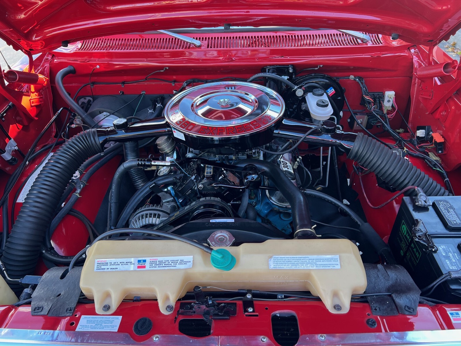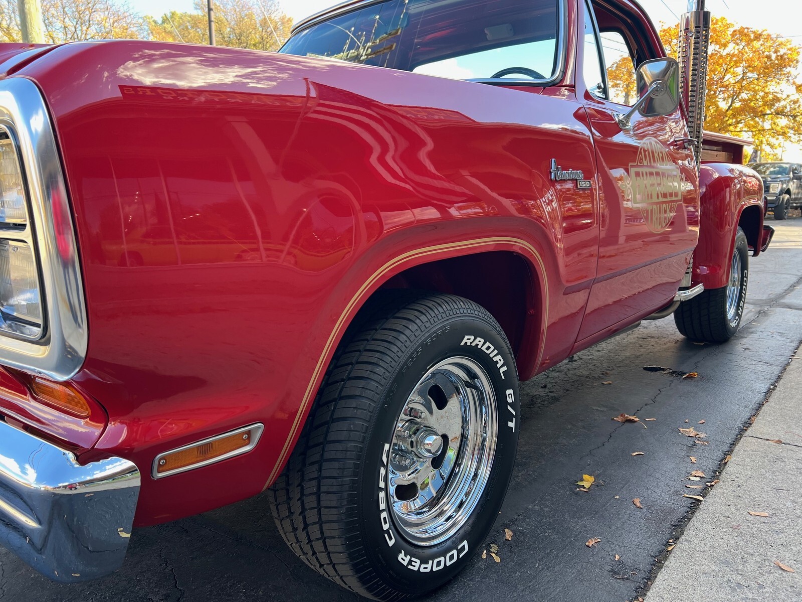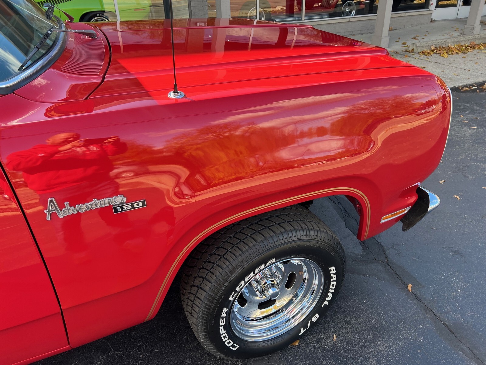 Rare Adventurer Li'l Red Express Pickup, Frame-Off Restored with 36,000 original miles, factory medium Canyon red paint, factory black vinyl interior, matching numbers 360 ci hi-performance engine, factory 4 bbl, factory intake & exhaust manifolds, electronic ignition, original dual snorkel fresh air cleaner, factory chrome valve covers, power steering, power front disc brakes, factory air conditioning, 727 Torqueflite automatic transmission, factory bench seat, factory tach & gauges, original am-fm-cb stereo, cruise control, crossover stainless dual exhaust with factory stack pipes, factory rear axle with 3.55 Sure Grip, 275/60R15 Copper rear tires, 255.60R15 fronts, 15â chrome rally wheels, original wood trim & bed, dual chrome mirrors, factory jack with spare, original ownerâÂÂs manuals, Rare Mopar Muscle!