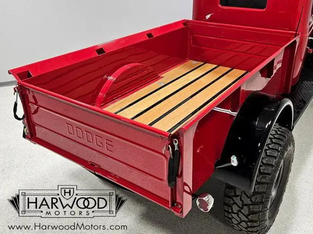 That?s where this absolutely awesome 1949 Dodge Power Wagon resto-mod comes in?it keeps everything that made the original Power Wagon legendary while adding a big dose of usability for today?s world. It?s still wrapped in its original sheetmetal, so that utilitarian do-anything look remains 100% intact, right down to the fully functional Ramsey winch on the front bumper. It?s massive, make no mistake, but the incredible proportions look right and dressed in traditional bright red with black fenders, it could almost pass for a stock truck. And that?s the magic of Dan Mininger?s work?he updates the Power Wagon without removing its soul. Hardware is correct, the doors fit nicely, the hood snugs down without a fight, all signs of a craftsman at the top of his game. And with just test and tune miles on the build, it remains in excellent condition throughout. Even the oak in the bed is beautifully finished?probably too nice to ever work for a living, but a wonderful finish to an exceptional truck.
