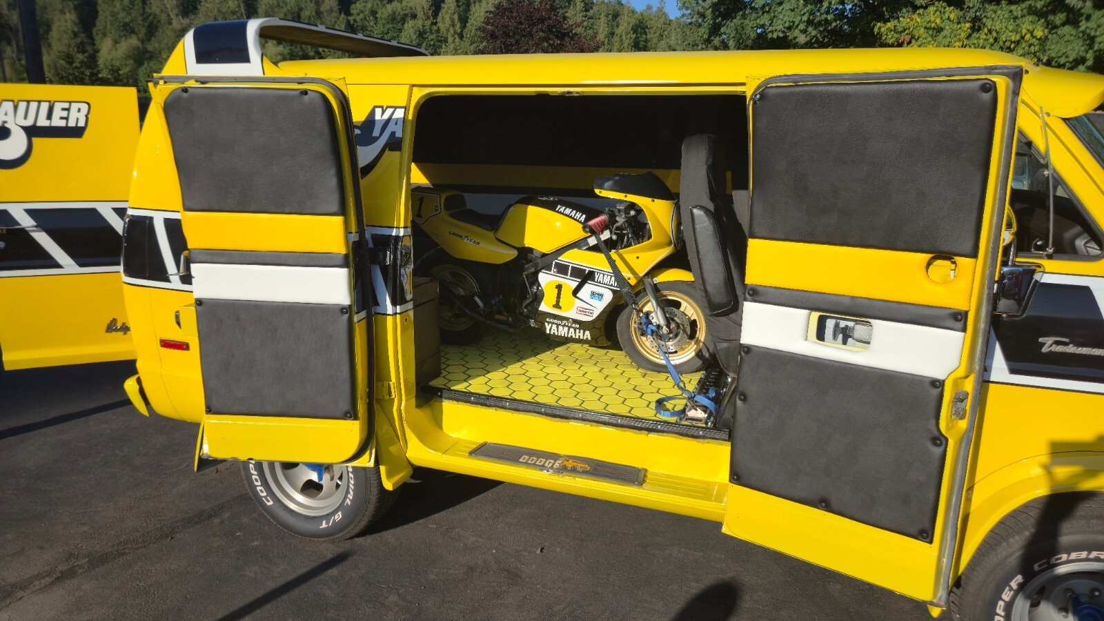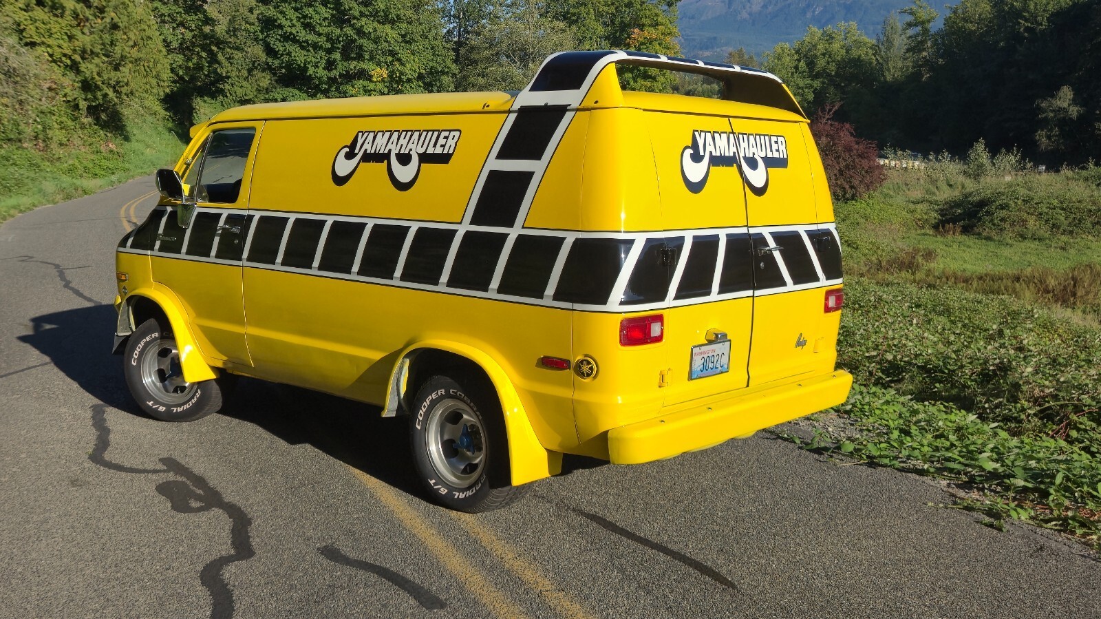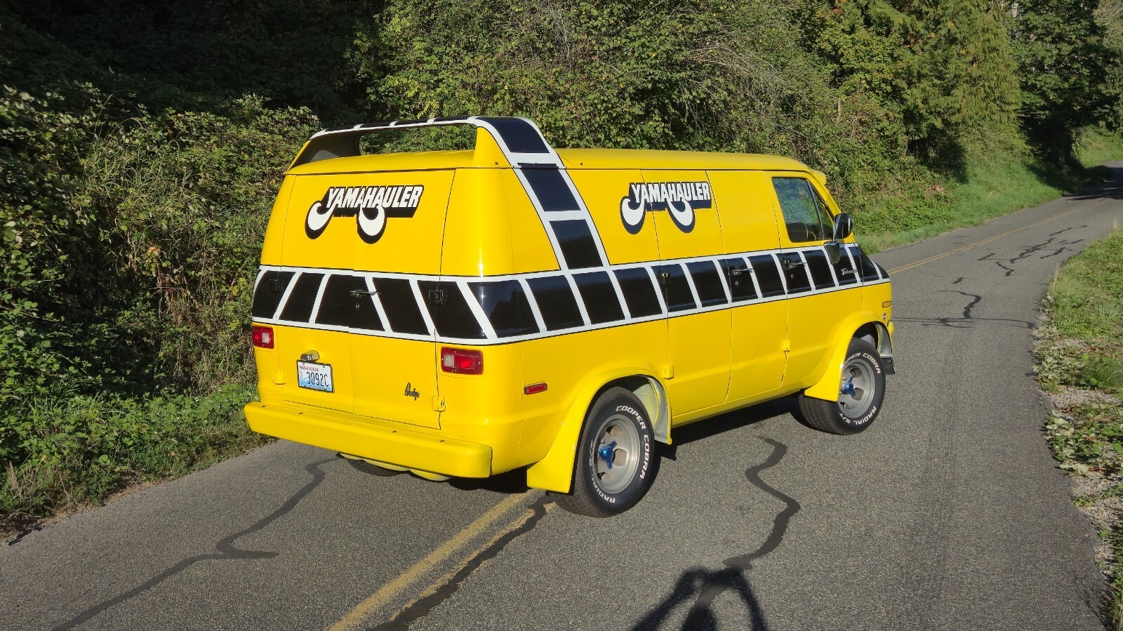 1977 Dodge Tradesman 200 van. Yamahualer paint scheme that brings back memories of the original Yamahauler that was a give-away from Hot Rod Magazine in the early 70's. This van has tons of new parts including but not limited to:New crate 318 cid, with Edelbrock 600cfm carb and dual plane intake, distributor (cap/rotor/wires/plugs), water pump (hoses/belts/thermostat), electric fan, Hedman headers with full exhaust, Fuel pump, complete wiring harness(lights and radio not hooked up), custom cerekoted YAMAHAULER aluminum valve covers and air cleaner, 727 automatic transmission Cooper Cobra G/T tires, custom interior with under bench storage, new driveshaft and u joints, E-tracks for securing motorcycles, coolers, or whatever you like. Motorcycle is NOT included with sale. Only presented as display.This van was recently driven to the VANHAVEN van show in Seattle (about 150 miles) with no issues. Good oil pressure, good temp. charging just fine. Brakes work well, no alignment issues.Complete custom repaint last summer, custom Yamahauler decals, and Yamaha symbol on roof.This van is very solid with very little, if any, rust. Doors are all solid, frame and underneath are clean. All body flares, front and rear spoilers are new with no cracks or damage. Light yellow tint on front door windows.Enjoy a blast from the past and be the envy of everyone you meet! This van is an attention getter! From motorcycle fans, to groovy people everywhere, this a great conversation piece and will bring smiles wherever you go!We have tried to describe this as clearly as possible. Please see pics for best explanation. And as this is a 50 year old vehicle we make to guarantees or warranties expressed or implied and this is an AS IS, WHERE IS SALE.We accept bank wire transfer only. However, the $500 non refundable deposit may be done thru ebay. The remaining amount must be received within 7 days of end of auction. We will work with your transport company for pick up.Feel free to ask questions.