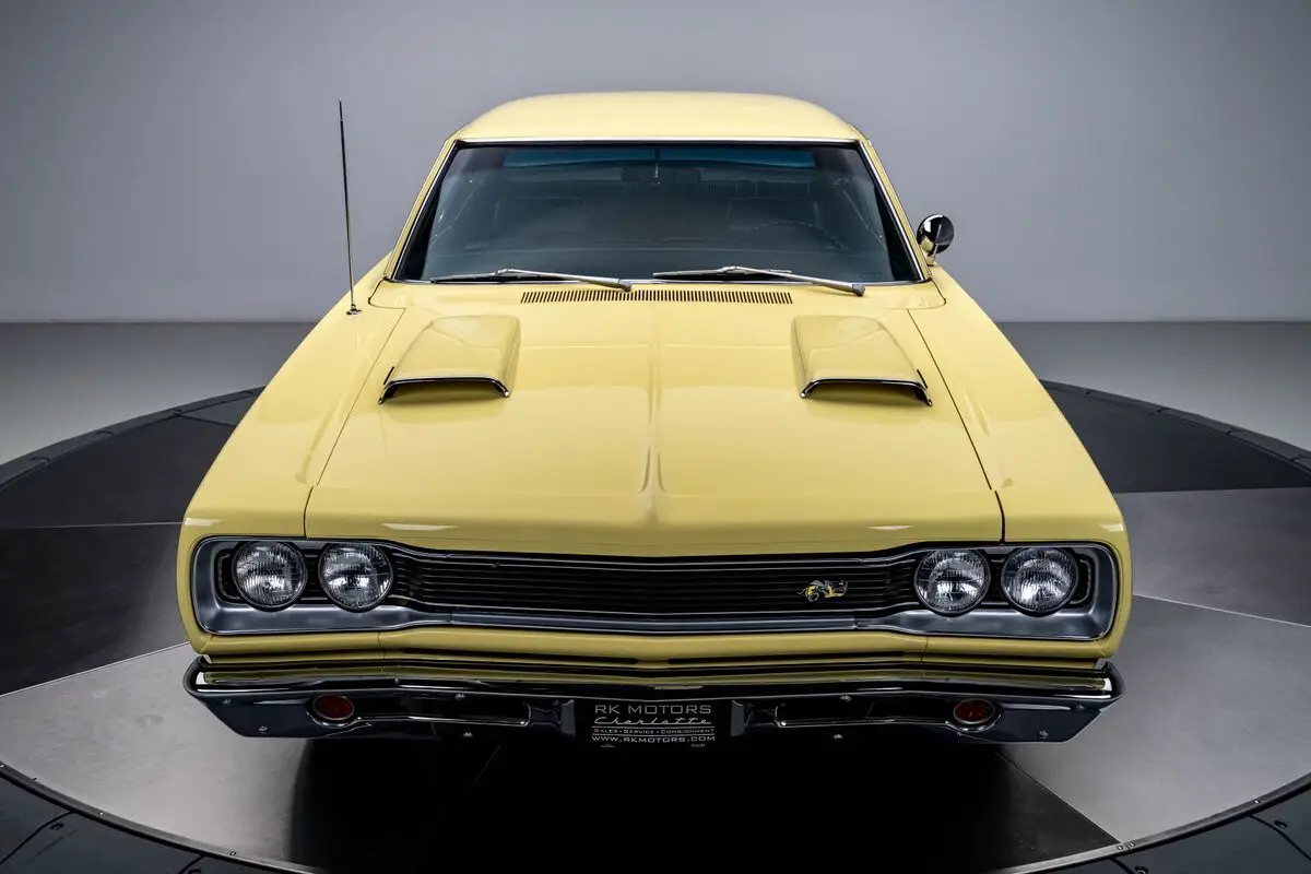 The 1969 Dodge Super Bee started as a smart, budget-friendly muscle car idea. Most were equipped with the solid 383 Magnum. A smaller group got the 440 Six-Pack. But the rarest few were ordered with the 426 Hemi and a 4-speed manual, backed by a Dana 60 Sure-Grip rear end. This example is one of them. Finished in Code Y2 Yellow with a black bumblebee stripe, it came built to make a statement-and still does.Dodge produced just 166 Hemi Super Bees that year, and only a fraction were WM21-coded 4-speed coupes. Most were driven hard, wrecked, or forgotten. Few survived with original drivetrains and sheetmetal. This car did. Verified by Mopar expert David Wise, it retains matching stampings across the engine, transmission, body, and dash tag. It's