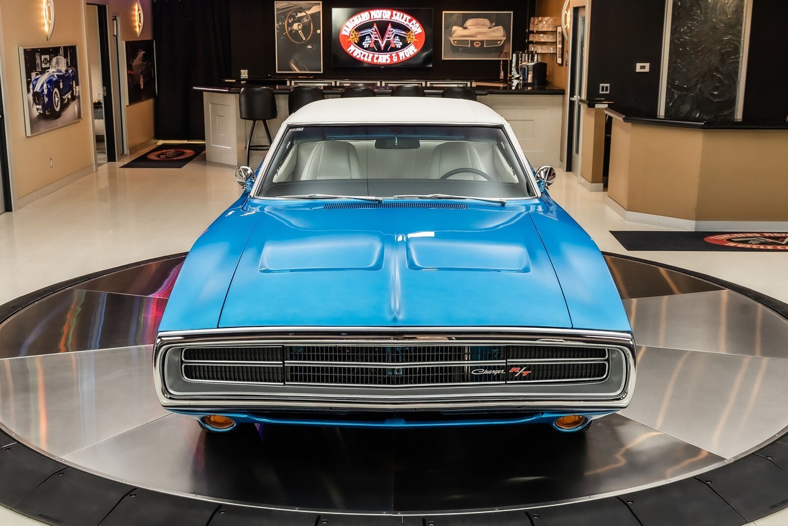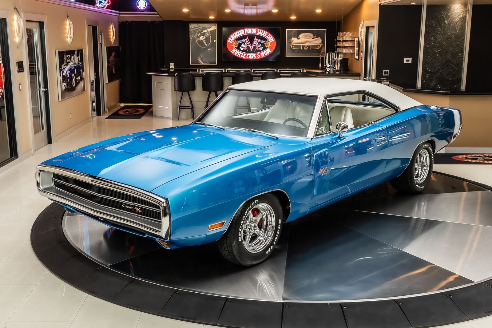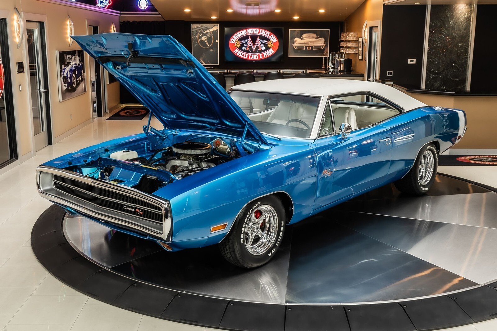 Check out this amazing 1970 Dodge Charger R/T Restomod! This Charger has been fully rotisserie restored with no expense spared and has been finished in Beautiful Blue along with a White Vinyl Top, Rear White Stripe and a set of Billet Specialties Wheels wrapped in BF Goodrich Radial TA tires to Complete the look! Under the hood of this beautiful Mopar is a New 6.1L Hemi V8 Engine Equipped with Holley Sniper Electronic Fuel Injection! Power is sent to the rear wheels through a 6 Speed Manual Transmission and Suregrip Rear End with a 3.55:1 Gear Ratio. This car has also been optioned with Power Brakes (Front Disc), Rack and Pinion Power Steering, Triangulated Suspension Setup, Coilovers, Aluminum Radiator, Hydraulic Clutch and Air Conditioning!