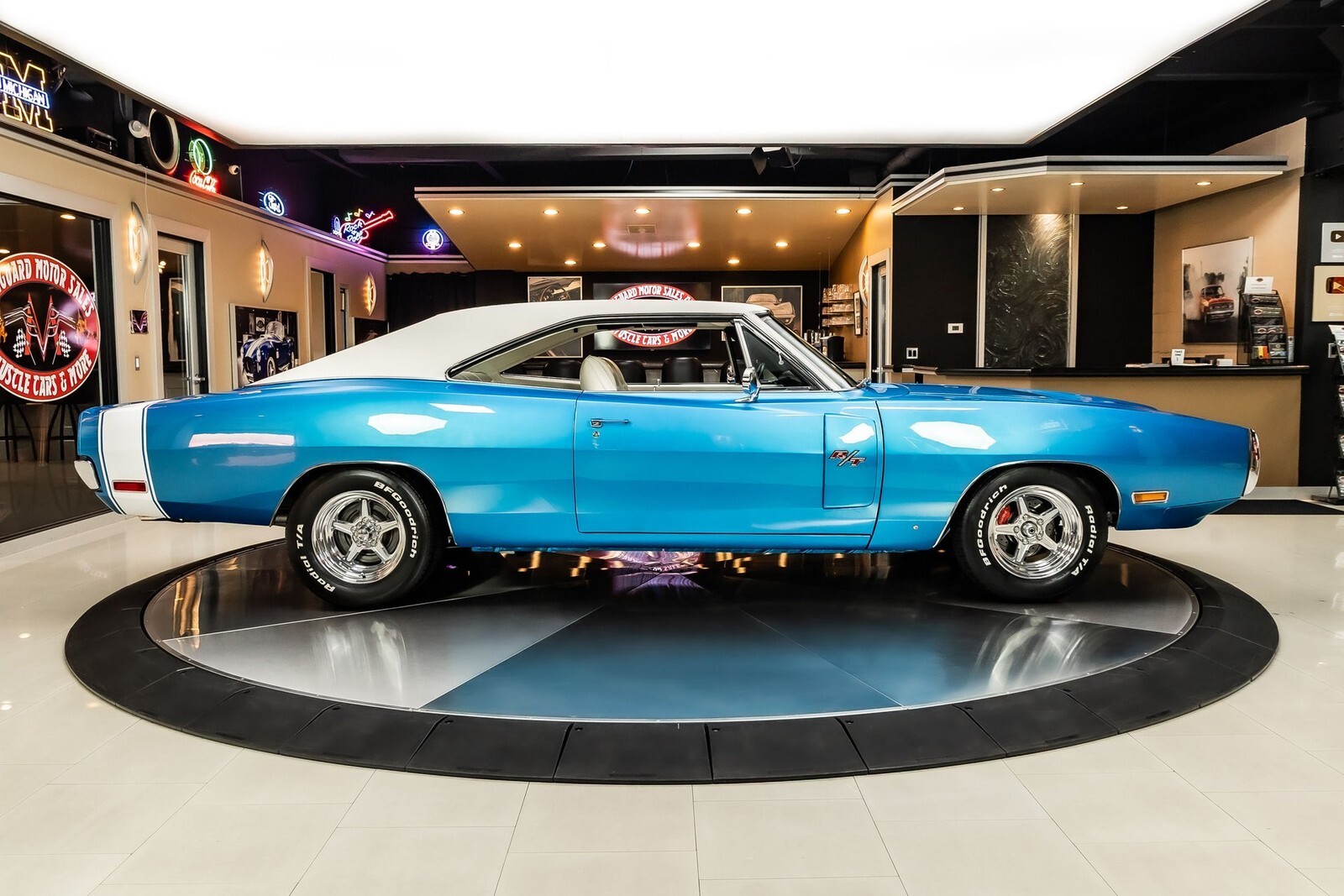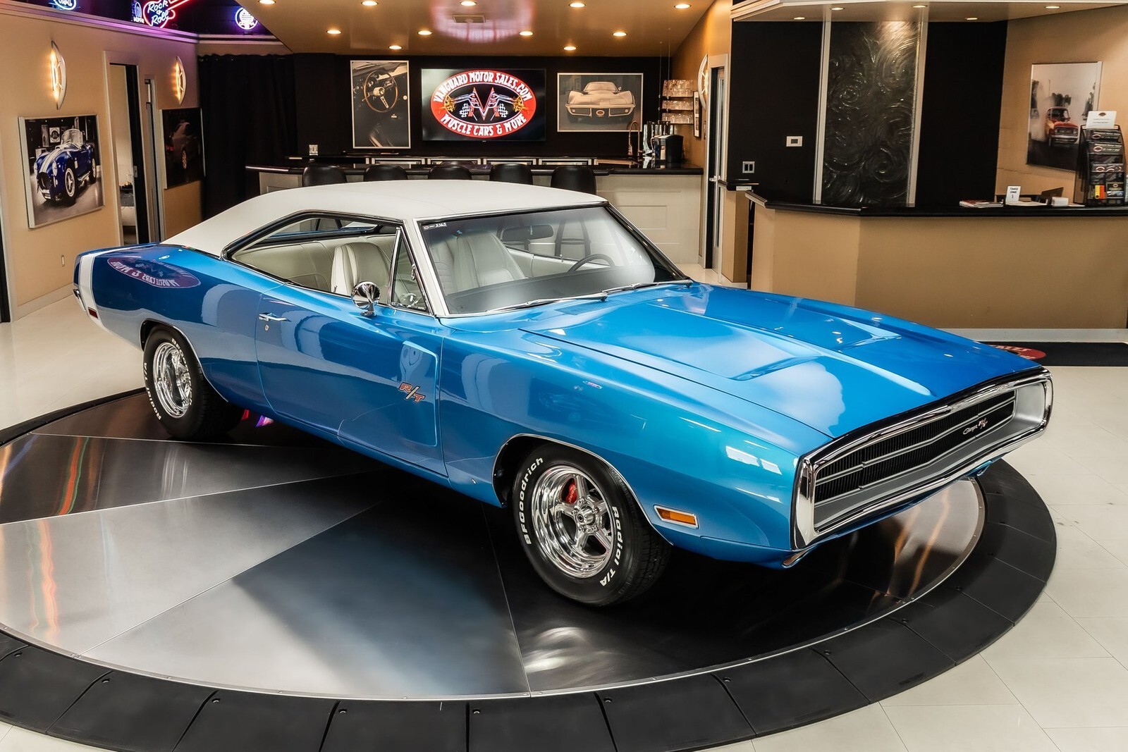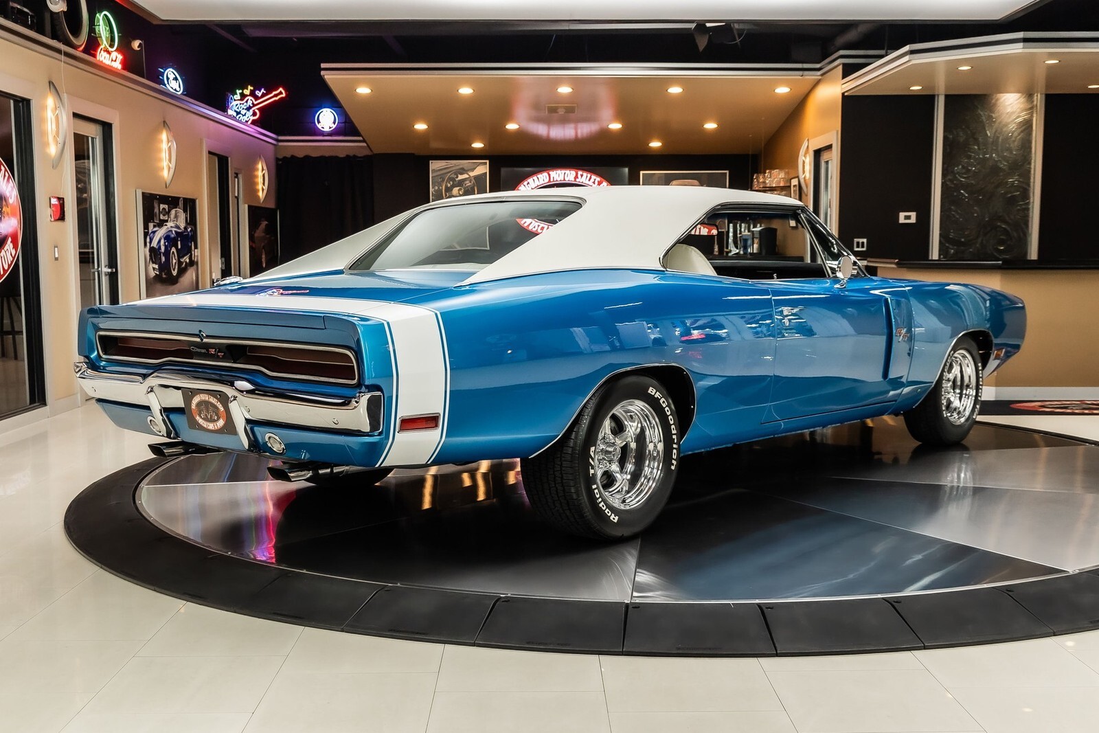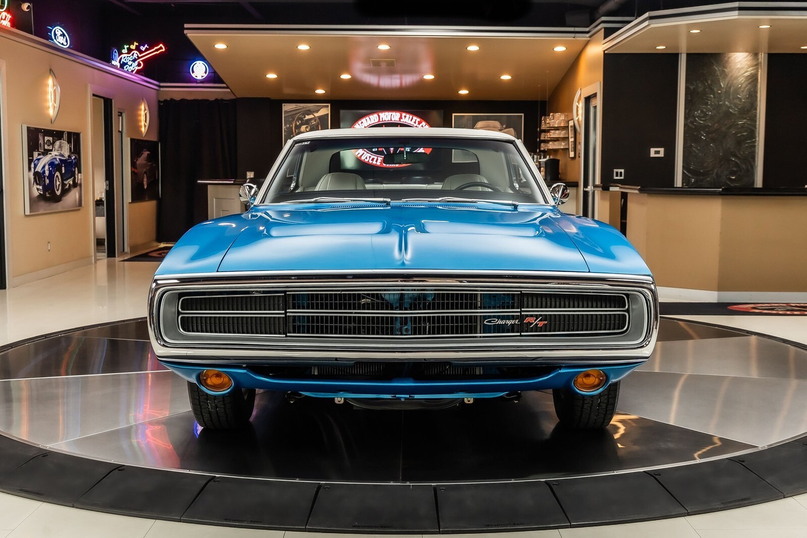 Check out this amazing 1970 Dodge Charger R/T Restomod! This Charger has been fully rotisserie restored with no expense spared and has been finished in Beautiful Blue along with a White Vinyl Top, Rear White Stripe and a set of Billet Specialties Wheels wrapped in BF Goodrich Radial TA tires to Complete the look! Under the hood of this beautiful Mopar is a New 6.1L Hemi V8 Engine Equipped with Holley Sniper Electronic Fuel Injection! Power is sent to the rear wheels through a 6 Speed Manual Transmission and Suregrip Rear End with a 3.55:1 Gear Ratio. This car has also been optioned with Power Brakes (Front Disc), Rack and Pinion Power Steering, Triangulated Suspension Setup, Coilovers, Aluminum Radiator, Hydraulic Clutch and Air Conditioning!