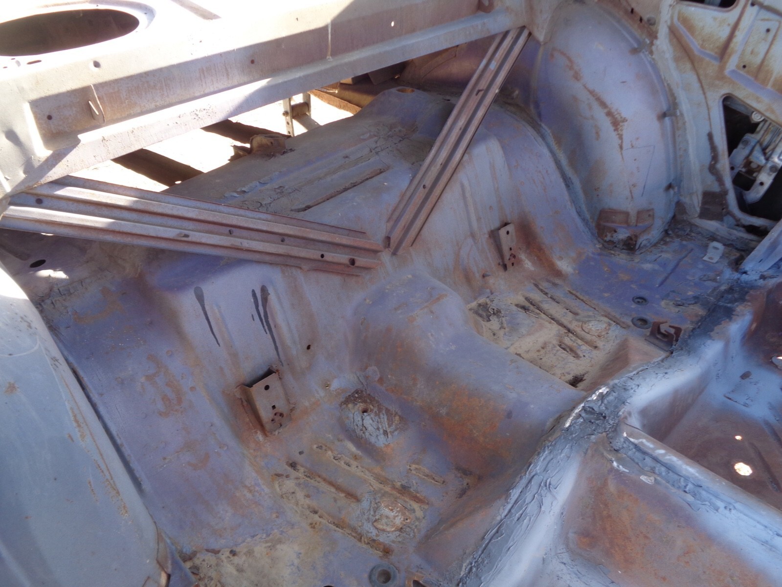Solid original areas of car that never had rust include frame rails, doors, roof, rocker panels, firewall, inner fenders, cowl, back seat area, shelf tray, etc. Rust free doors from another car are mounted. original quarters only need lower patches which are included with purchase. so most the hard work on the body was done. Rust repair is needed on lower windshield area and lower windshield corners. car looks like it was hit in rear at some time, needs some work.