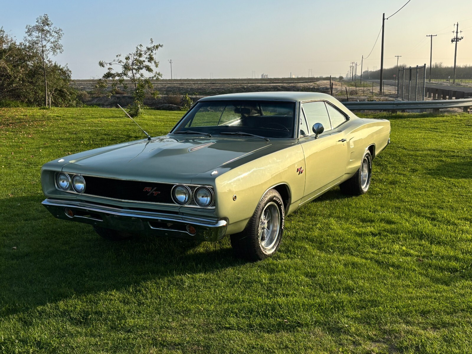1968 Dodge Coronet R/T. Numbers matching 440 Magnum V8 under the hood. Dual exhaust with a satisfying but subdued rumble. 727 torque flite transmission. Both engine and transmission have been professionally rebuilt with less than 500 miles by a Mopar specialist. A vintage air AC system has been installed with expert detail which includes placement of original chrome and metal interior vents. Completely restored 8 track player with AM and FM capability. 8 track player and radio work as they should, with new OEM speaker. Front and rear seats have been reupholstered and carpeting with heavy padding has been replaced, using classis industries OEM products. Door panels and upper emblem plates are original to the car and are in good condition. Tail lights are in beautiful original condition, with zero pitting which is rare for these taillights. Front grill and headlight bezels are original as well and in great condition. Front disk brake conversion. All lights and blinkers work as they should. Speedometer does bounce around and isn't working correctly. Front end and steering components have been gone through, rebuilt and replaced. Car has fresh high end paint of its factory Mopar frost green less than a year old. Mickey thompson tires and crager wheels are installed.