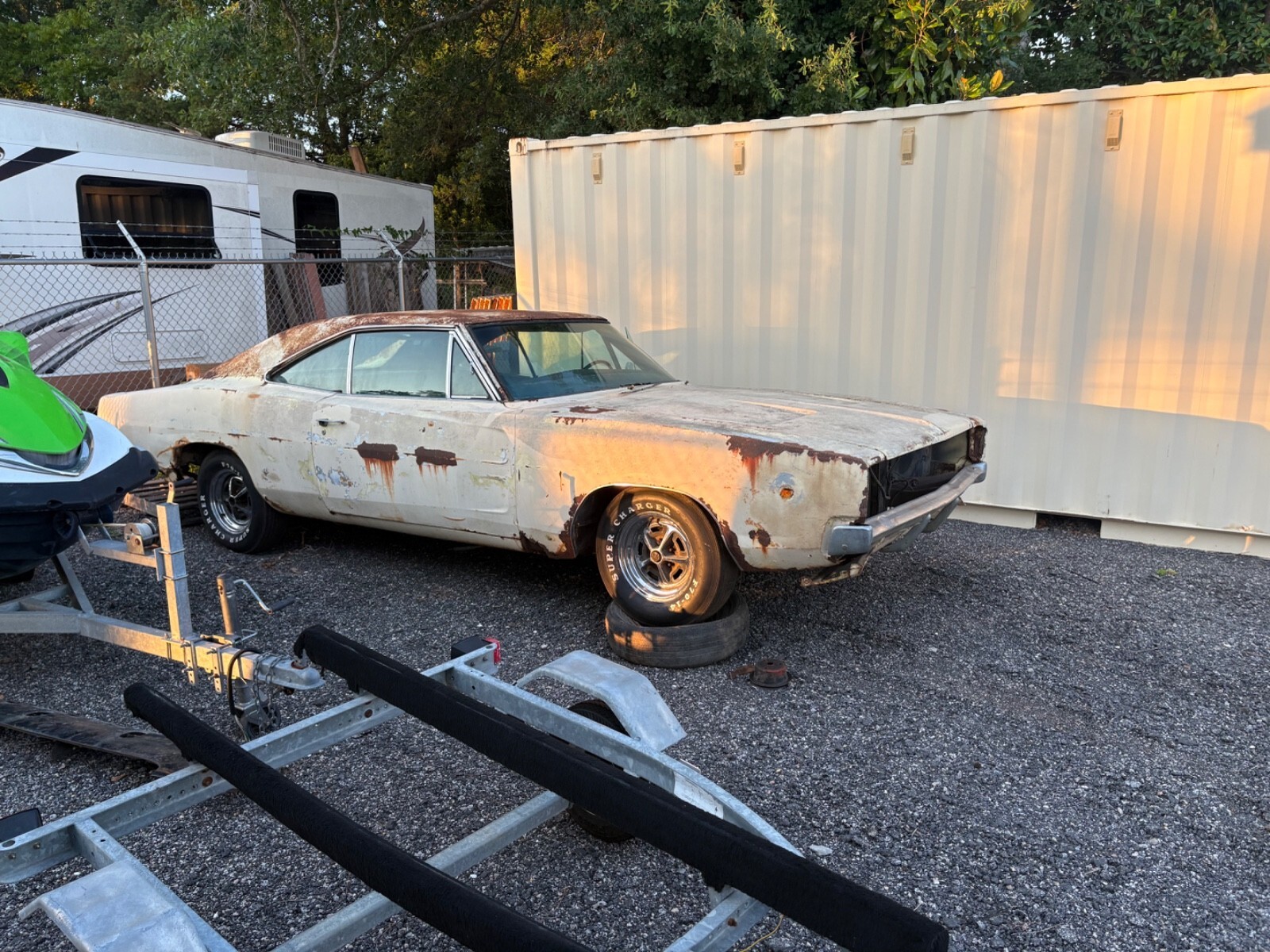 I have 2 1968 Dodge Chargers for sale, this auction is for your choice of the 2 cars. one car has a big block and the other a small block with factory AC and a build sheet. Both cars will need floor pans and trunk pans. The frame appears to be useable. The best part of these cars is that i have a clean and clear SC title for each one. These cars are mostly complete project cars meaning that the tail lights, bumpers. front grills, full interiors etc, are all there, I bought these cars out of a barn in March of this year from a long term storage. May consider non project trades or i would be more negotiable if the same person bought both cars. Also i can help with loading these onto your choice of carrier, i can line up delivery anywhere in the continental USA. Delivery not included in sale price unless negotiated up front into the deal.