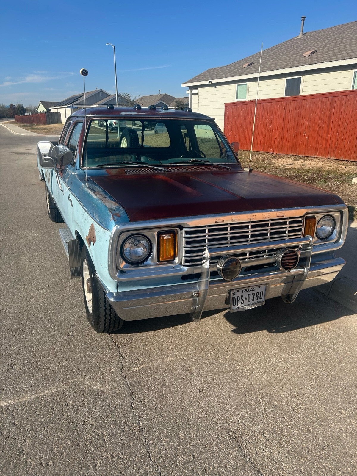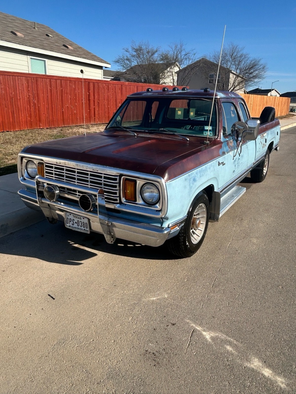 One-owner ’78 Dodge D200 with 171k confirmed original miles. a strong 5.9L 360 V8 and drives very smooth. Truck runs, drives, and stops. All lights work, including added cab lights.