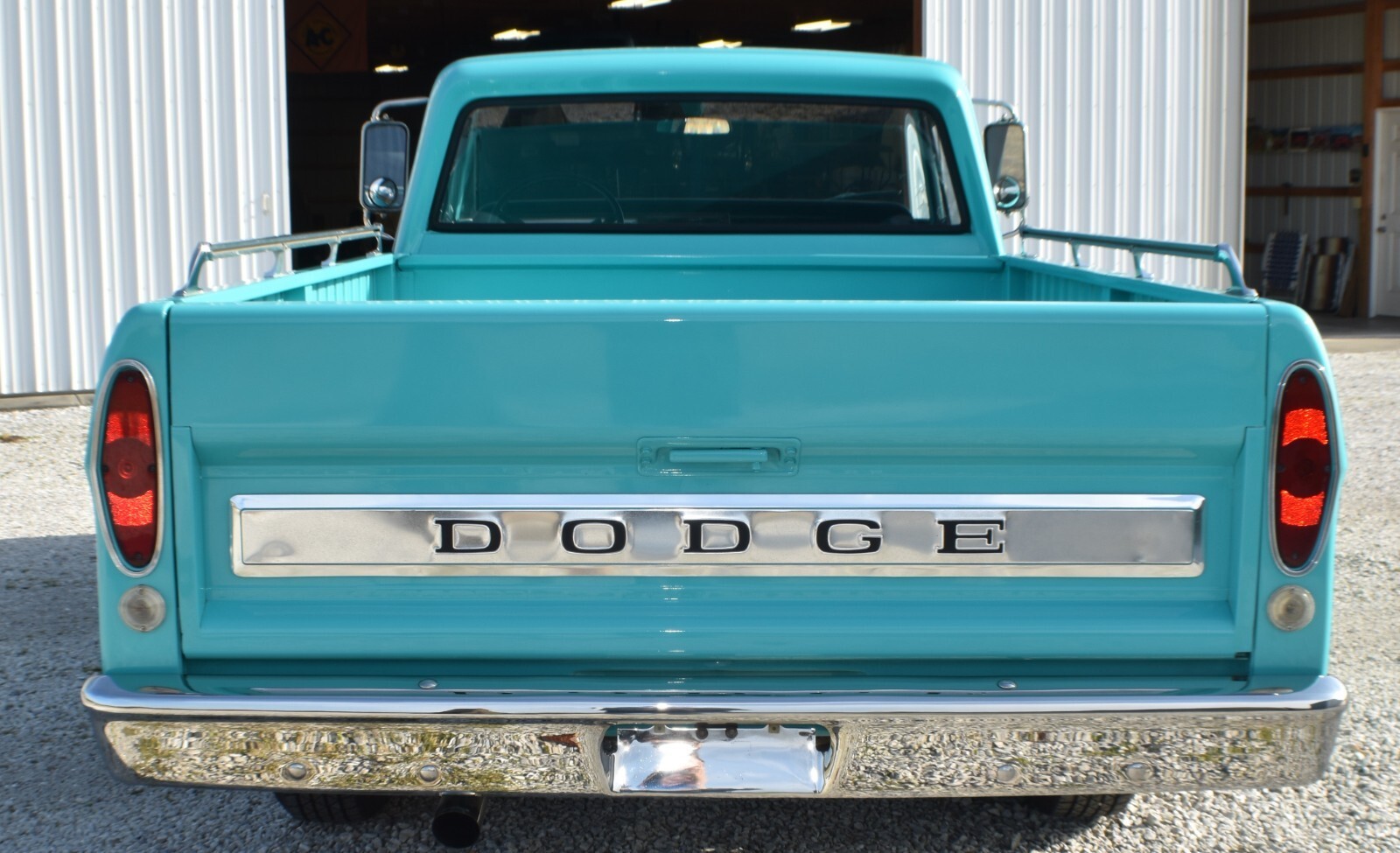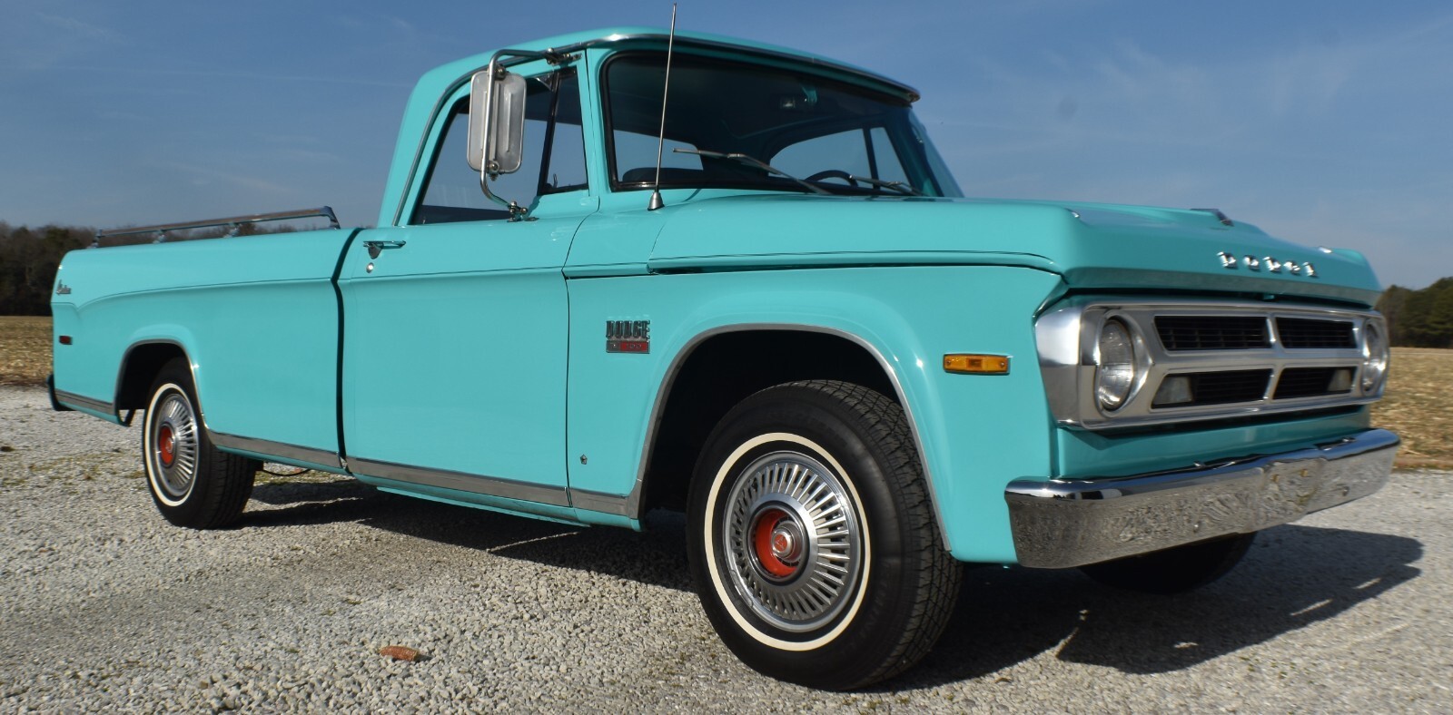Beautifully restored 1970 Dodge D100 Adventurer long-bed (8 ft) pickup repainted in the original Dessert Turquoise and powered by the factory 225 cu. in. ‘slant six-cylinder’ engine rated at 140 horsepower and backed by a 3-speed manual transmission (Three on the Tree). This Dodge has been in the family almost since new. It was purchased by the family in 1974, then sold to a local gentleman who restored it and purchased back several years later. Mileage since the rebuild is estimated at 50,000 TMU.