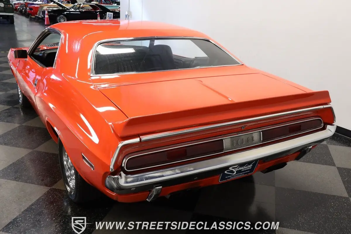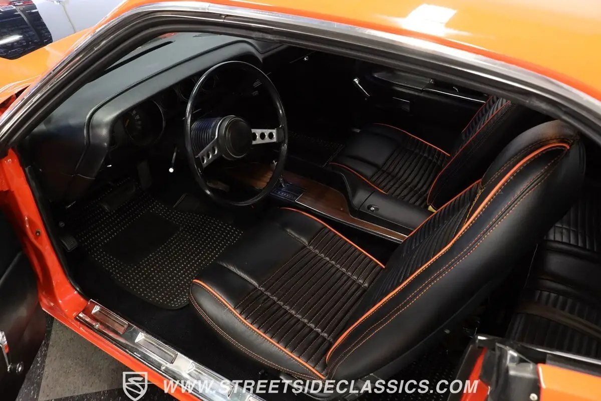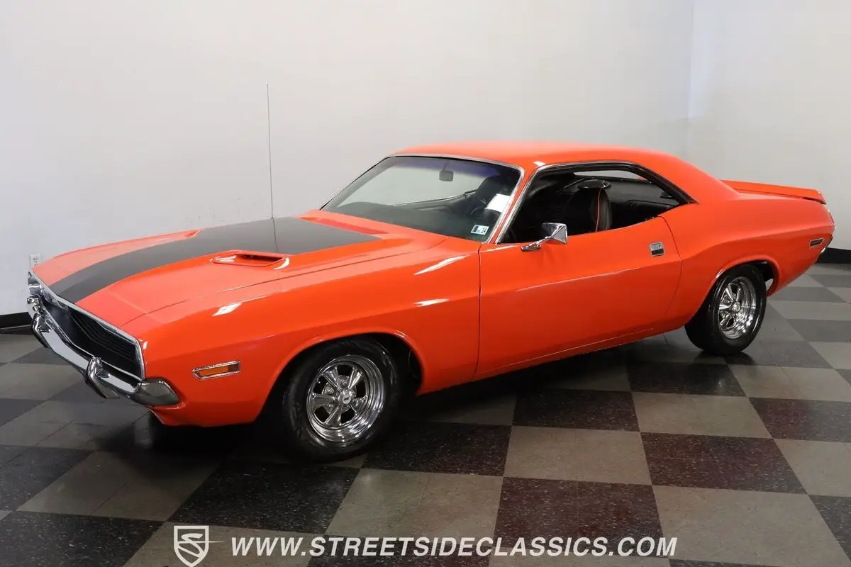 It's one of the most iconic muscle cars ever to light up the asphalt, draped in period-correct Vitamin C Orange paint and powered by an expansive V8 that has been the envy of fellow enthusiasts for decades. This 1970 Dodge Challenger 440 is an outstanding representative of its model, and it arrives at the present in great shape. Its nostalgia-inducing paint has a nice shine and, if you take a closer look, you'll see that the broad stripe ornamenting its hood is no mere decal. It's painted on, a feature reserved only for 1970 Challengers rolling off the assembly line outfitted with the coveted Bumblebee appearance package. Add in clean chrome bumpers at both ends, along with a collection of body trim that really shows nicely, and you have one fine-looking Mopar classic.