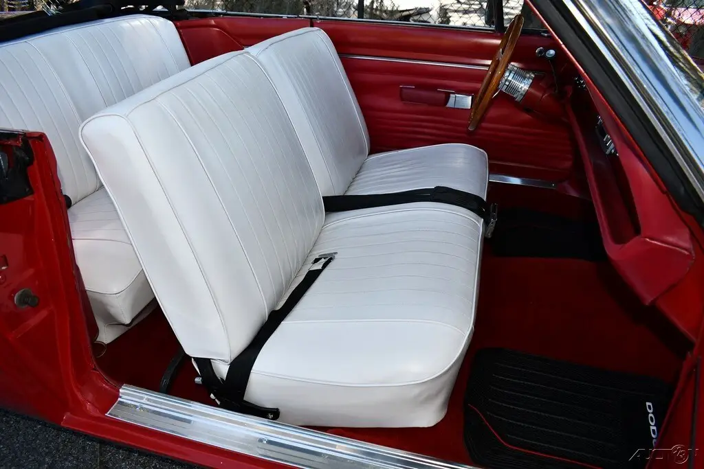 Remarkable Restored 1968 Dodge Dart GT Convertible 225ci Slant Inline 6 Cylinder Engine Automatic Transmission Red Exterior White Interior Power Convertible Top with Boot Cover Gauges Billet Steering Wheel Power Steering &