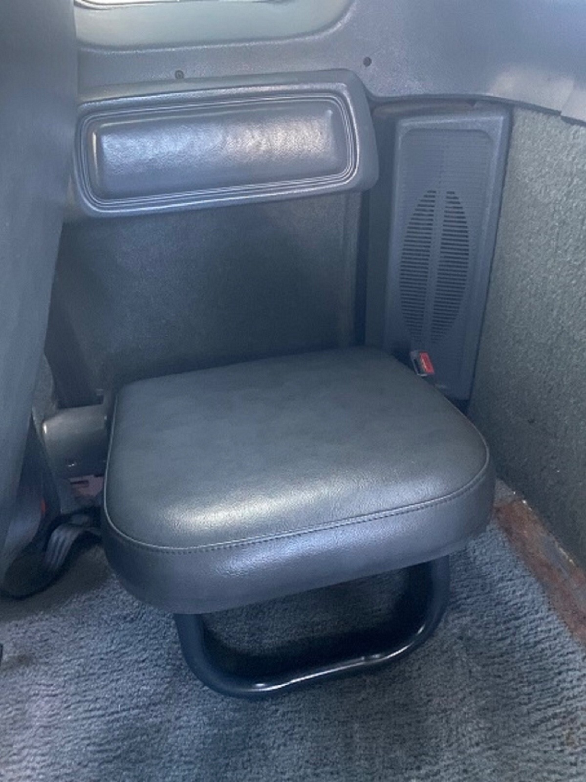 The cabin is trimmed in charcoal cloth with bucket seats up front and folding jump seats in the rear. Amenities include: