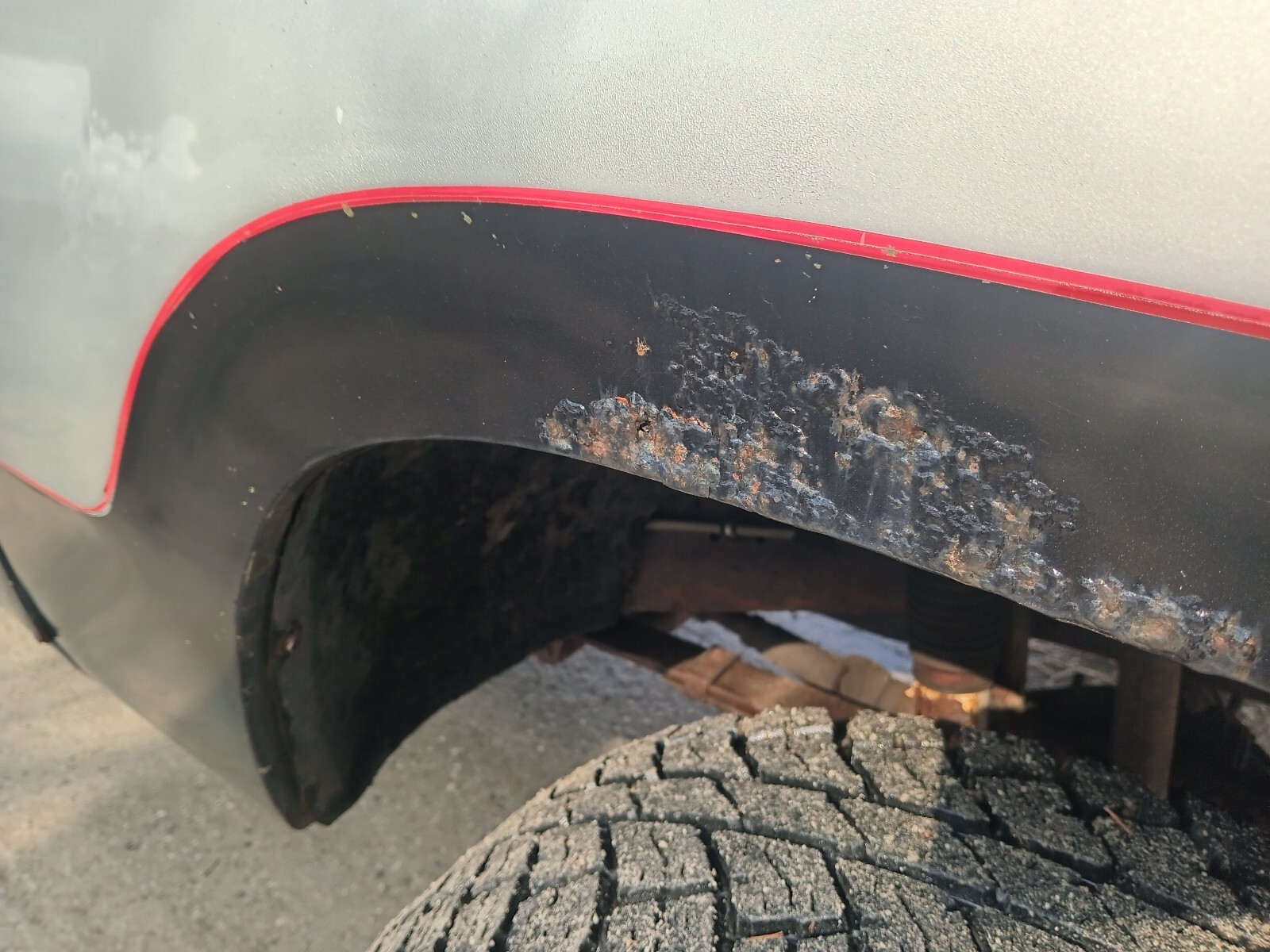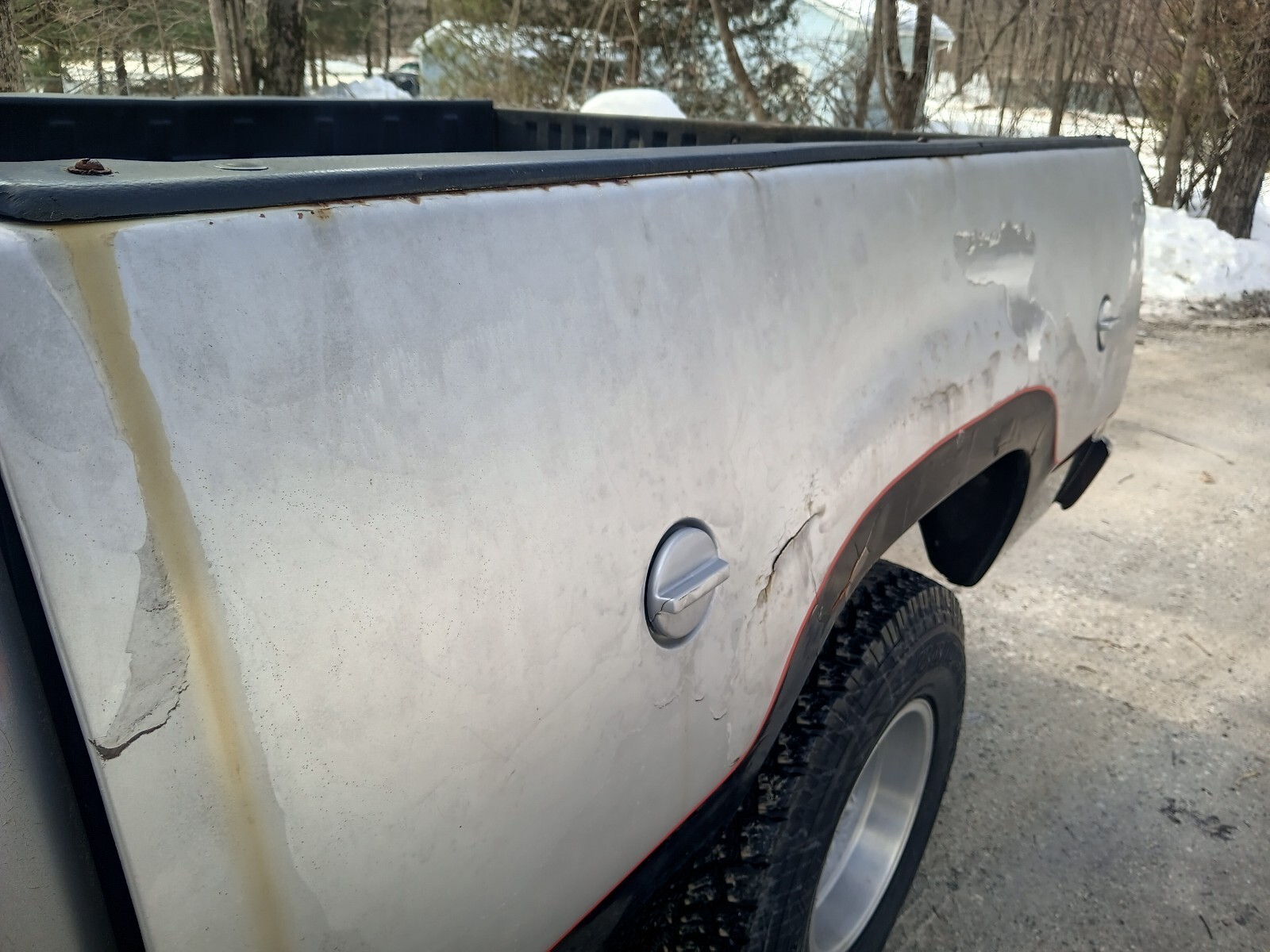 The frame is solid as well as the structure of the cab. The driver's floor pan was poorly replaced at some point and it rotted through again. Cab corners and mounts are pretty decent. The roof around the drip edge is rusted and will need repair/metal fabrication. It appears the right side bed side was replaced at some point and was installed with pop rivets. The left bed side has had previous repair and has filler cracking. The right side door has filler cracking. Other areas can be seen in the pictures.