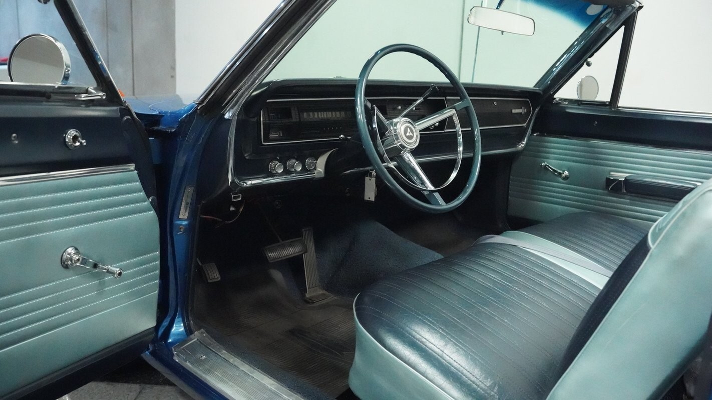 Inside, the blue vinyl cockpit keeps things old-school cool. A factory bench seat gives you plenty of room to operate, while the column-mounted shifter puts the TorqueFlite's muscle right at your fingertips. The original AM radio and beefed-up rear speakers let you bring your own soundtrack. Power steering and power brakes make this bruiser easy to handle when you're cruising or pushing it hard. Factory gauges keep you informed of what's happening under that hood.