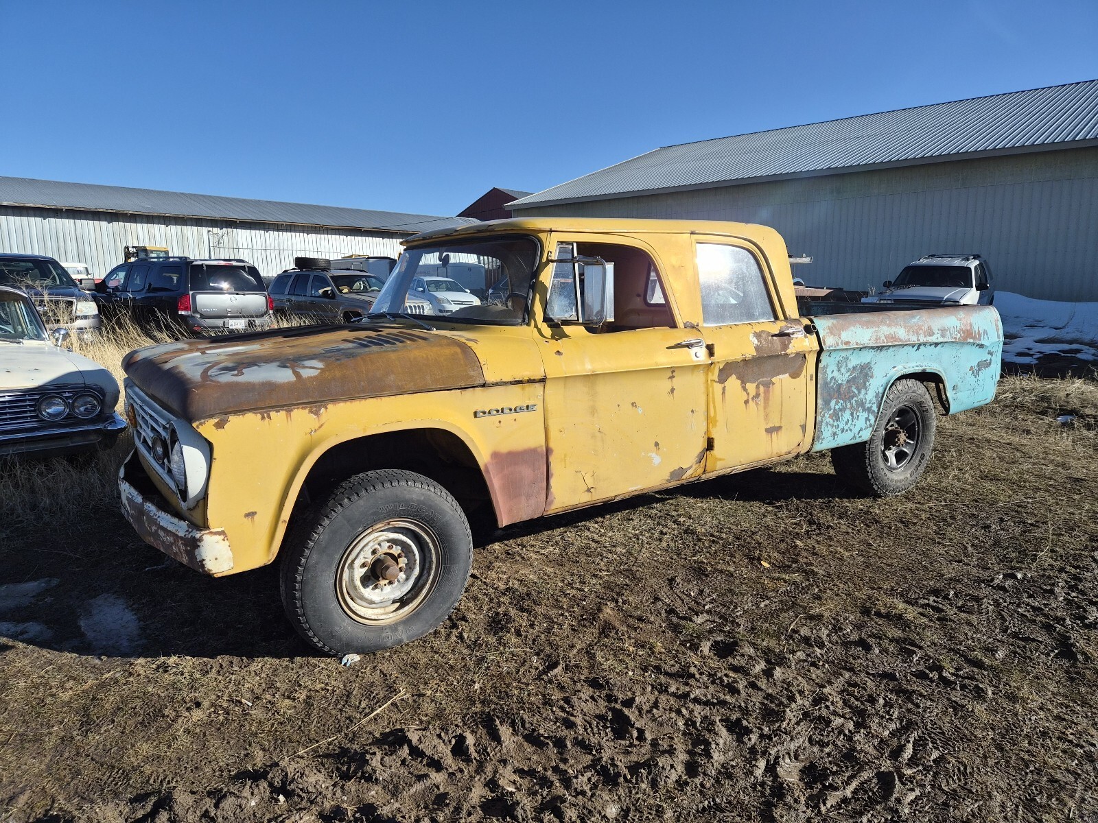 Clean 1969 title Dodge D200 2wd Clean as heck Montana truck. Can be a foreyes 62-65.5 front end.If you choose or you can keep the 66/67 pietin single headlight front end if you like. Comes with all the parts necessary to put this truck back together. I will even include a couple extra door cards for the interior doors. There's extra door skins, front bumper. Rear bumper core support extra hinges. Etc, everything you see in the pile of parts. Clean as heck, floor doorsteps and rockers.As shown in the photos. Location is drigg's idaho 83422 @dodgecrewcabs