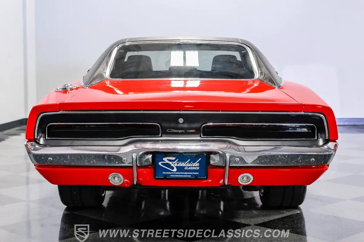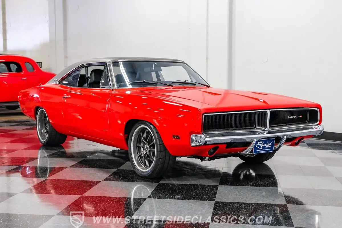 Owning what is arguably considered the ultimate MOPAR muscle car is more than getting from point A to point B-it's about making a statement every time the engine roars to life. This 1969 Dodge Charger Supercharged Hemi Restomod brings that feeling front and center, pairing raw power with modern refinement. Finished in striking Charger Red with a black vinyl roof, chrome bumpers, and trim, it commands attention before it even moves. Sequential taillights and a lowered stance enhance its aggressive presence, while staggered black Budnik wheels, 18" up front and 19" in the rear, give it a purposeful, performance driven look.