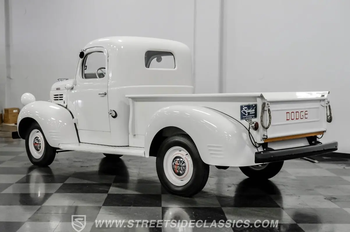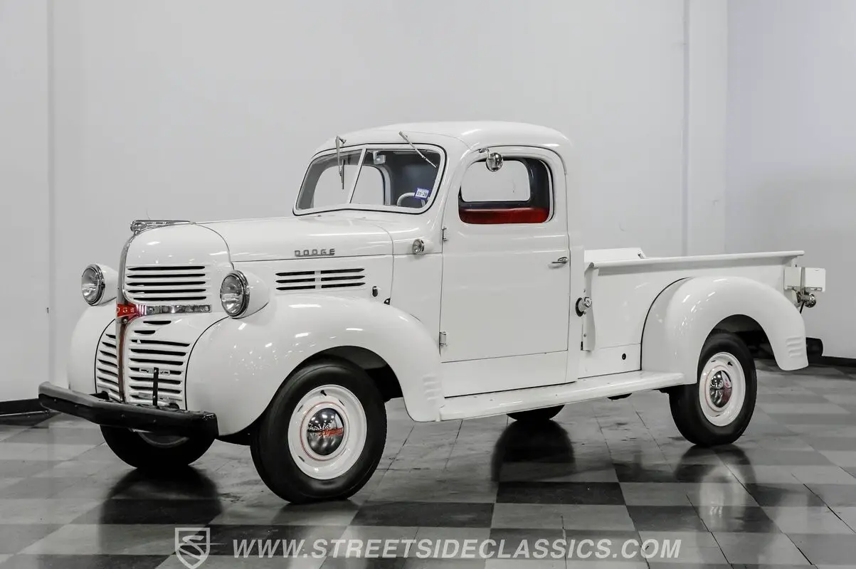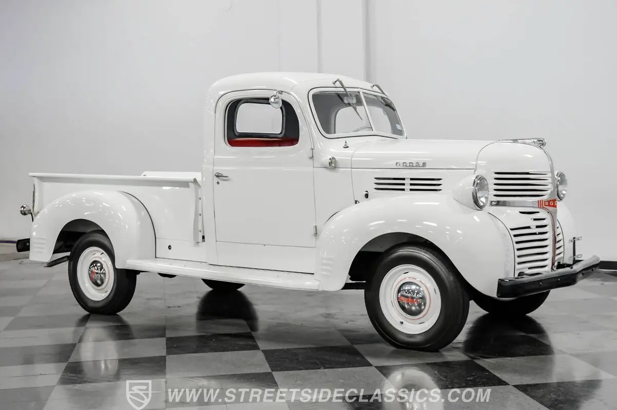 With its bright white paint accented by black bumpers and its consistent body panel alignment from end to end, this 1947 Dodge Pickup looks as if it catapulted from a '40s movie straight to the present. This is a great-looking vintage pickup and, while you can see evidence that it has continued to perform its duties after a previous restoration, those signs actually serve as testimony to its rock-solid running condition. All appearances indicate that this was once a top-tier show truck and, should you decide to return it to its former glory, it won't be a difficult process, as this post-war workhorse remains reassuringly capable in all respects, nearly 80 years after it first began its service.