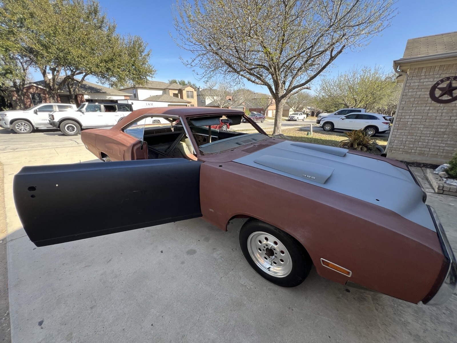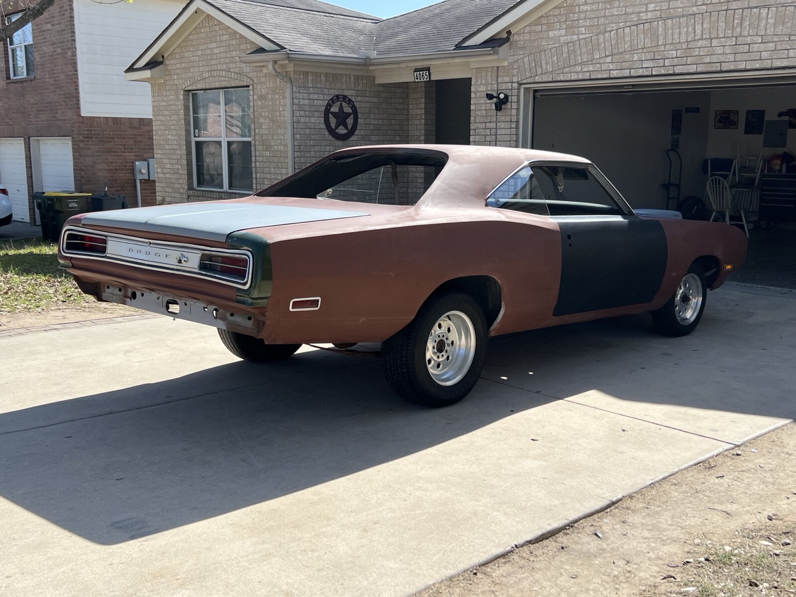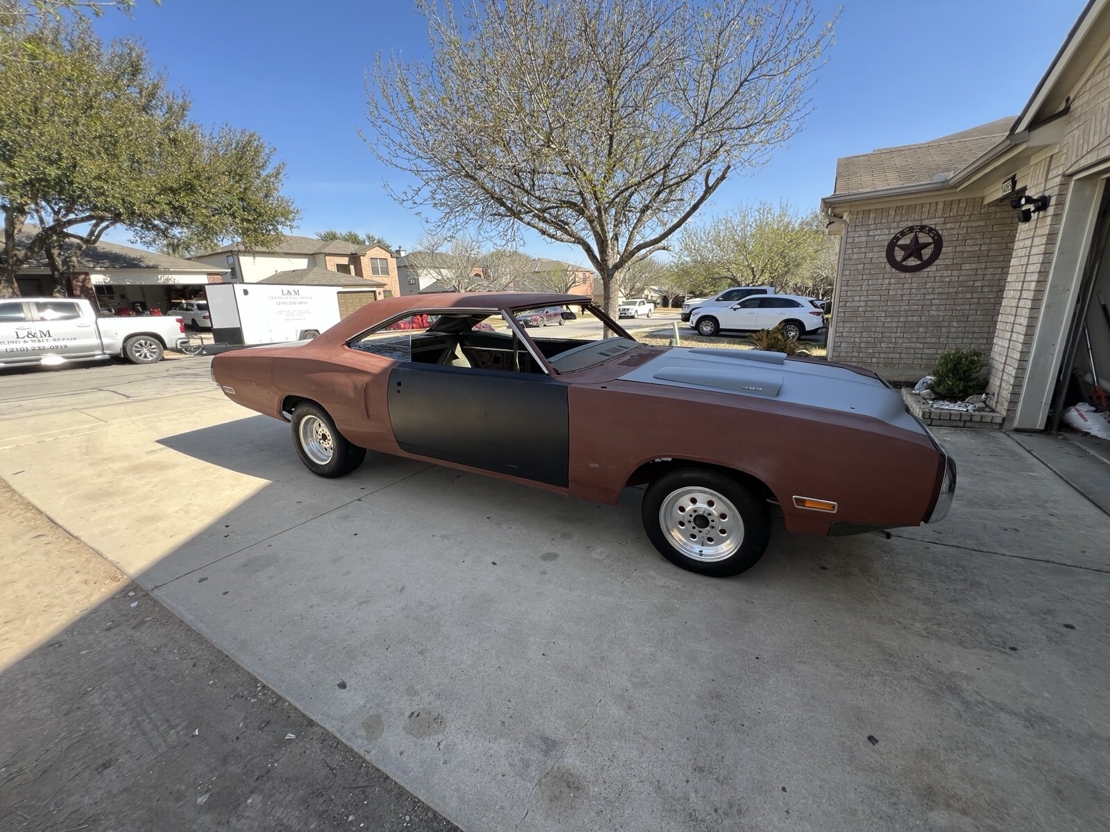 I have a 1970 dodge superbee for sale. Car is originally F8 green with a vinyl top 383 4 speed car. Original drivetrain is long gone its a roller. Car is an orginal 4 speed ac car which is pretty rare. All sheet metal has been done, and fuel and brakes lines have been run.Very clean car. Front wheels are 165 skinnies and rears are 255 60 15s. Sitting on weld wheels. Have all front and rear chrome trim, seatbelts, back small side glass. Rear windshield no front windshield or seats. Car does have an original N96 ram air hood with original scoops. Have a clean texas title. Everything matches as far as the trunk gutter, fender tag, and vin tag. All work was done on a rotisserie under carriage is in perfect condition. Feel free to contact me with any questions at 210-367-0288..17,500 obo